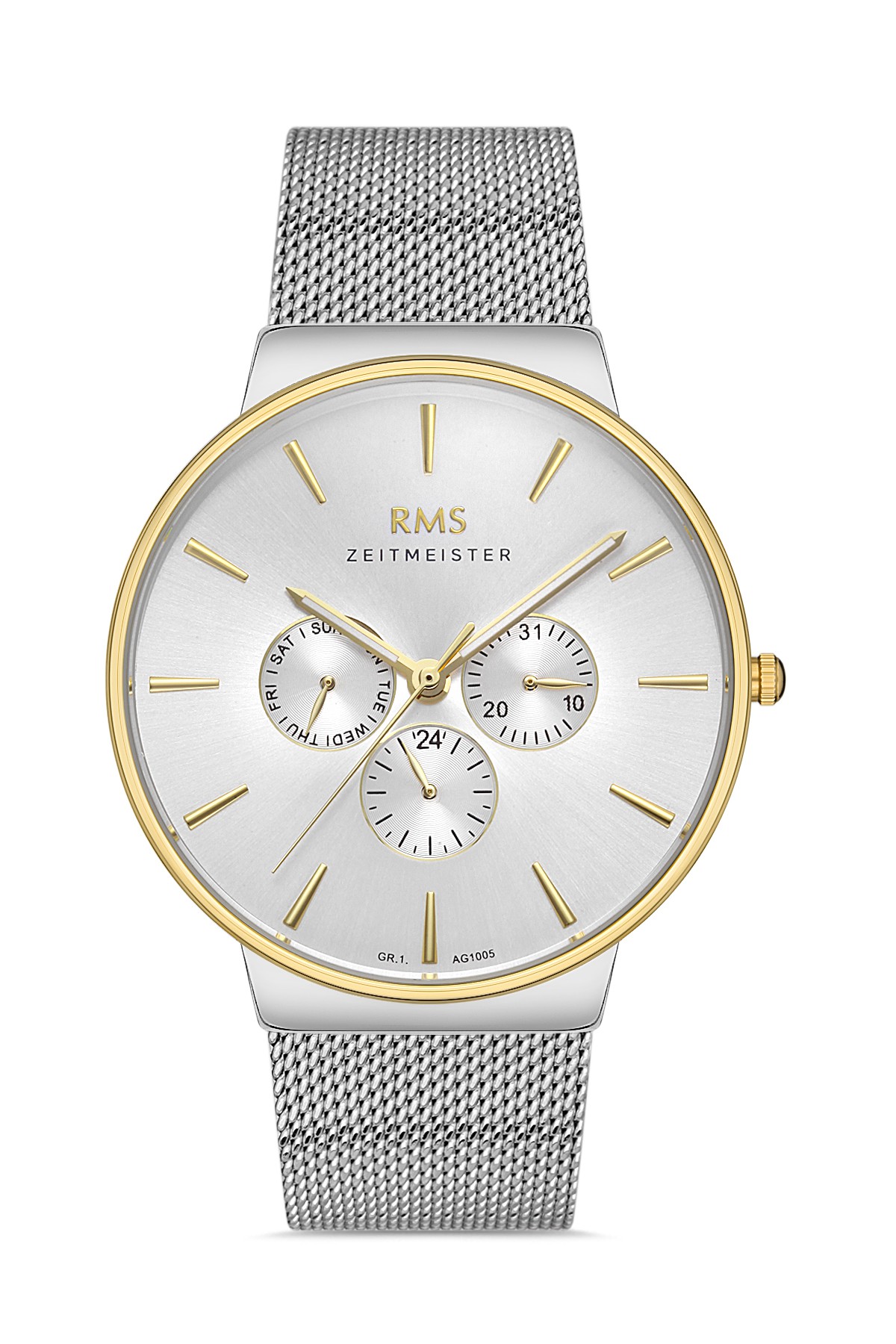 Erkek - Multi̇ Fonksi̇yon - Sari Beyaz - Gümüş - Çeli̇k Örme Kordon - 3 Atm - Sertleşti̇ri̇lmi̇ş Mi̇neral Cam - Grand Romanson