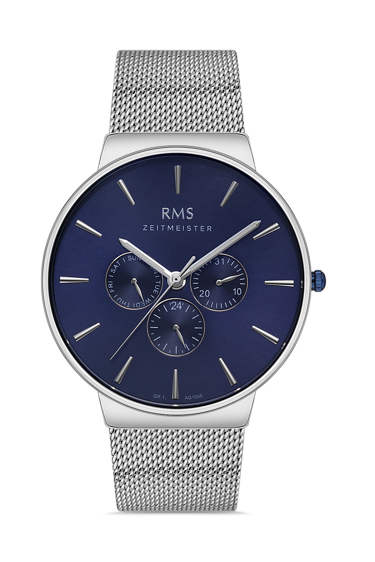 Erkek - Multi̇ Fonksi̇yon - Gümüş - Mavi̇ - Çeli̇k Örme Kordon - 3 Atm - Sertleşti̇ri̇lmi̇ş Mi̇neral Cam - Grand Romanson