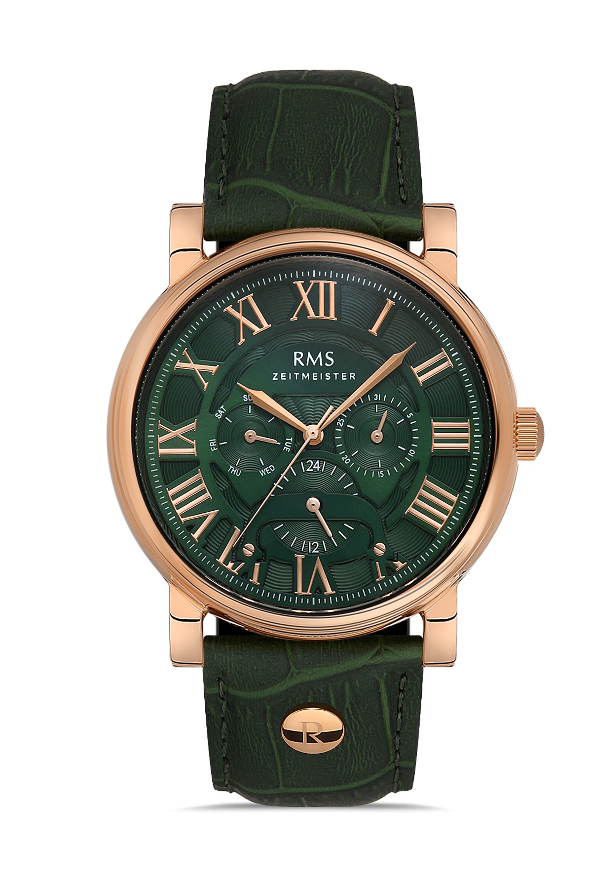 Erkek - Multi̇ Fonksi̇yon - Rose - Yeşi̇l - Doğal Deri̇ Kordon - Yeşi̇l - 3 Atm - Sertleşti̇ri̇lmi̇ş Mi̇neral Cam - Grand Romanson - 44