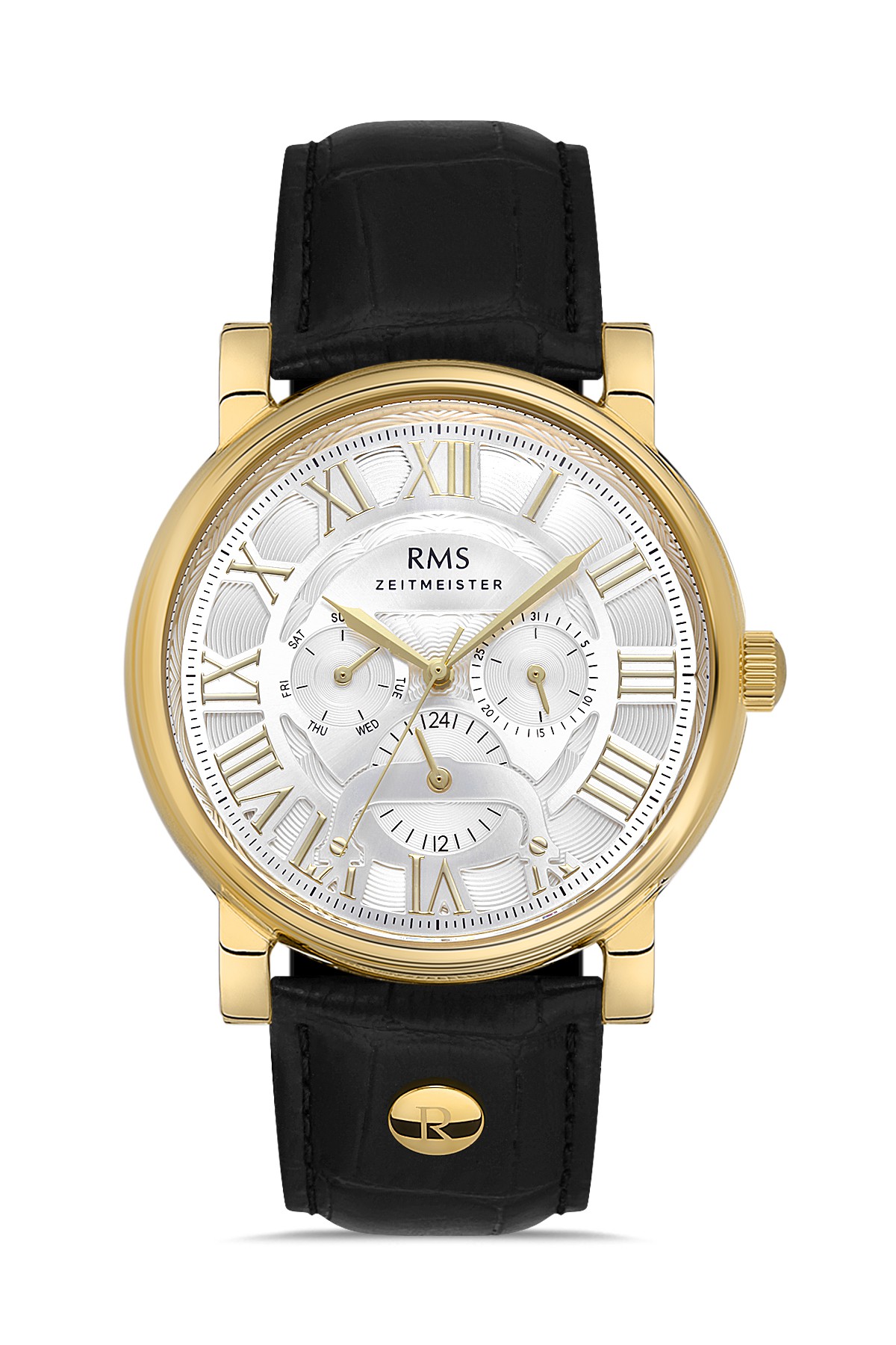 Erkek - Multi̇ Fonksi̇yon - Sari - Gümüş - Doğal Deri̇ Kordon - Si̇yah - 3 Atm - Sertleşti̇ri̇lmi̇ş Mi̇neral Cam - Grand Romanson - 44