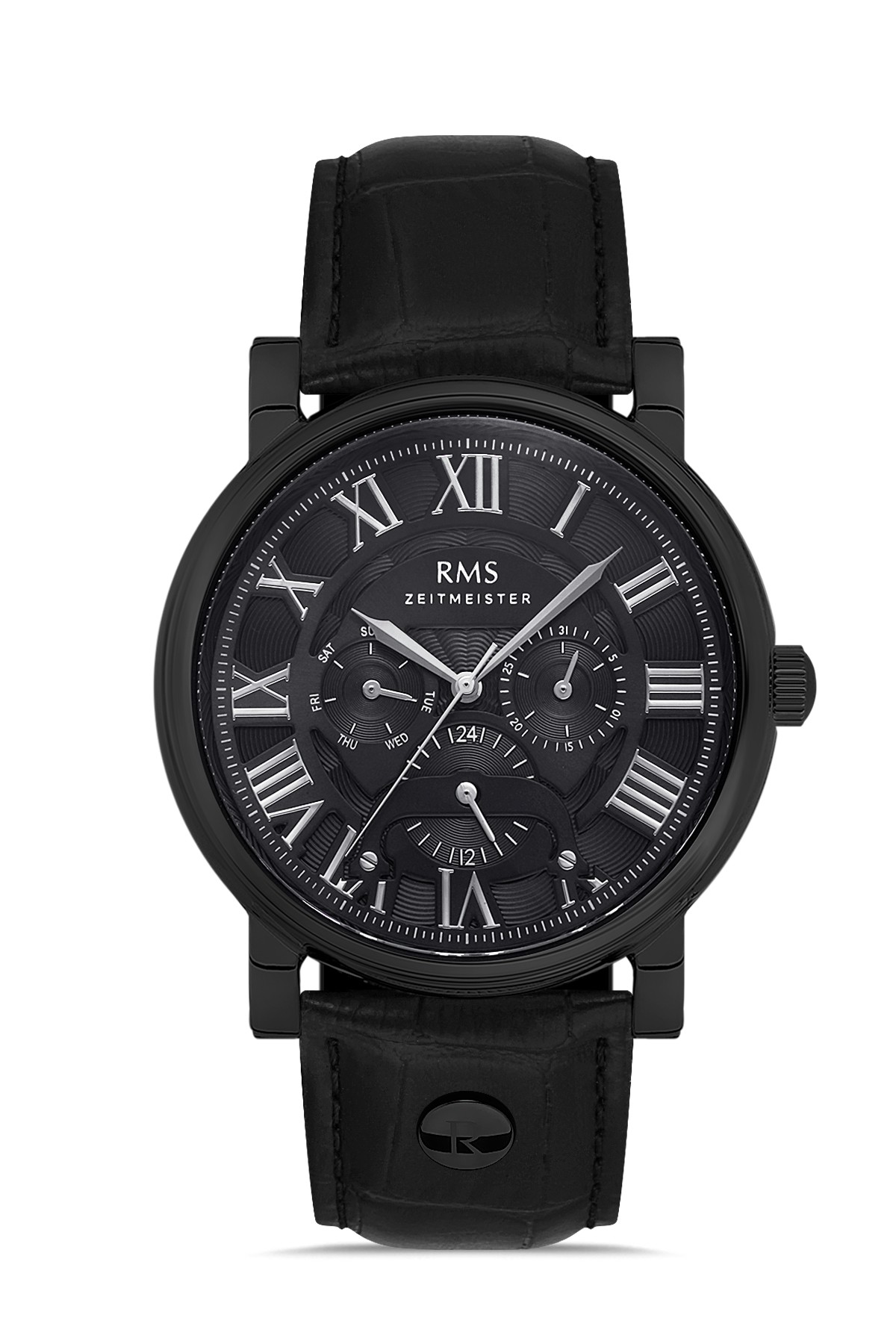 Erkek - Multi̇ Fonksi̇yon - Si̇yah - Si̇yah - Doğal Deri̇ Kordon - Si̇yah - 3 Atm - Sertleşti̇ri̇lmi̇ş Mi̇neral Cam - Grand Romanson - 44