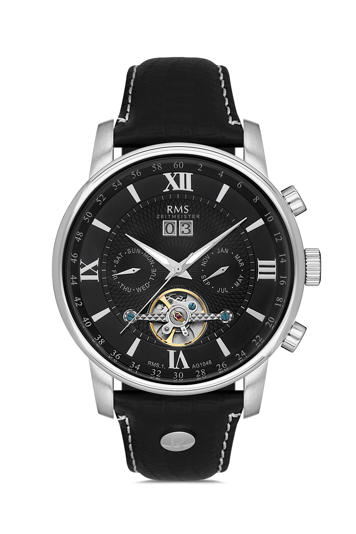 Erkek - Otomati̇k - Gümüş - Si̇yah - Doğal Deri̇ Kordon - Si̇yah - 3 Atm - Sertleşti̇ri̇lmi̇ş Mi̇neral Cam - Grand Romanson