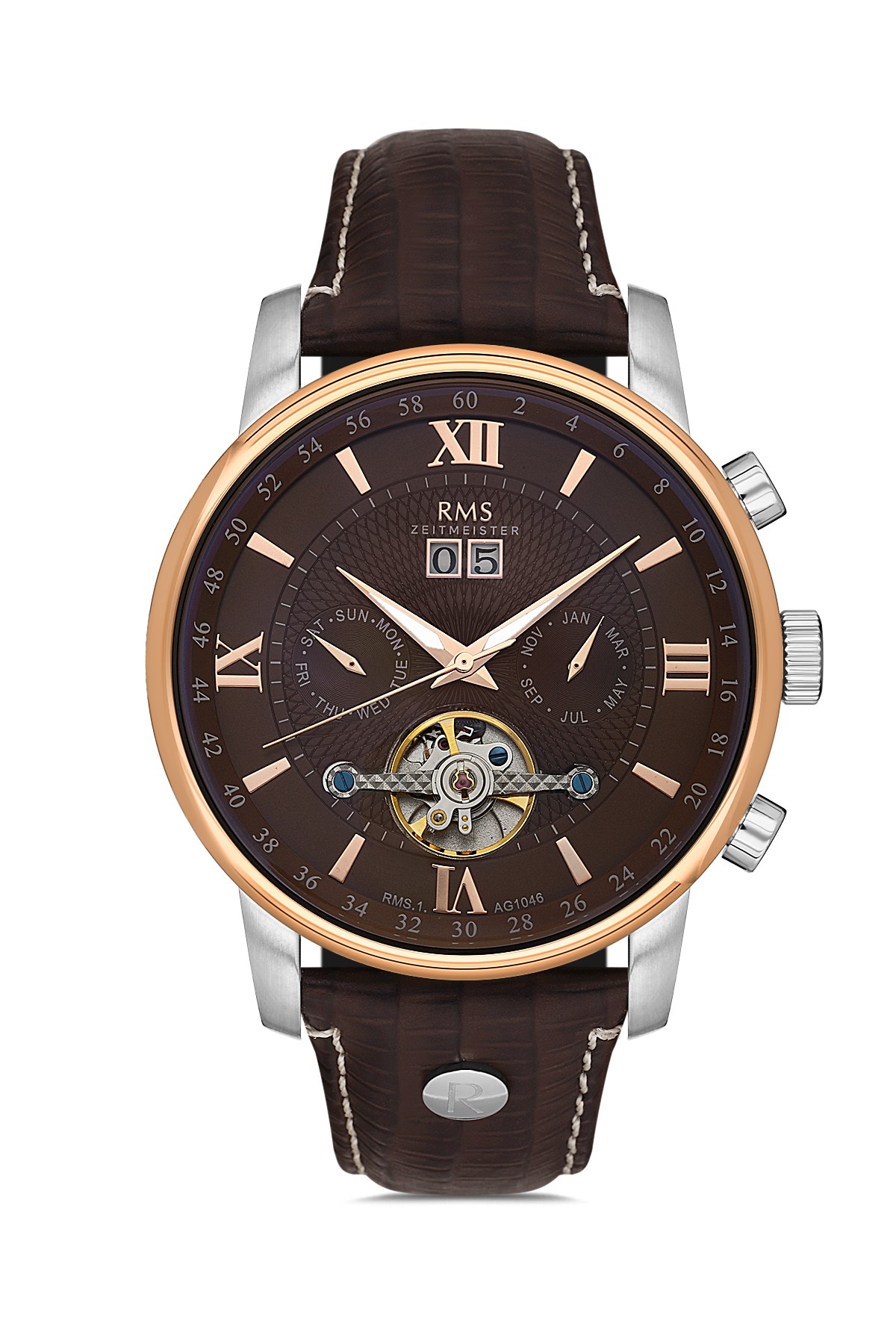 Erkek - Otomati̇k - Rose Beyaz - Mavi̇ - Doğal Deri̇ Kordon - Kahverengi̇ - 3 Atm - Sertleşti̇ri̇lmi̇ş Mi̇neral Cam - Grand Romanson