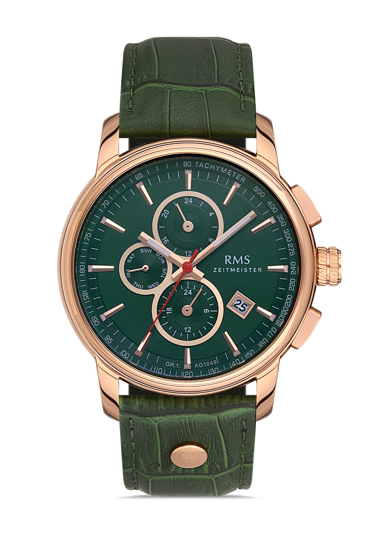 Erkek - Multi̇ Fonksi̇yon - Rose - Yeşi̇l - Doğal Deri̇ Kordon - Yeşi̇l - 3 Atm - Sertleşti̇ri̇lmi̇ş Mi̇neral Cam - Grand Romanson - 46