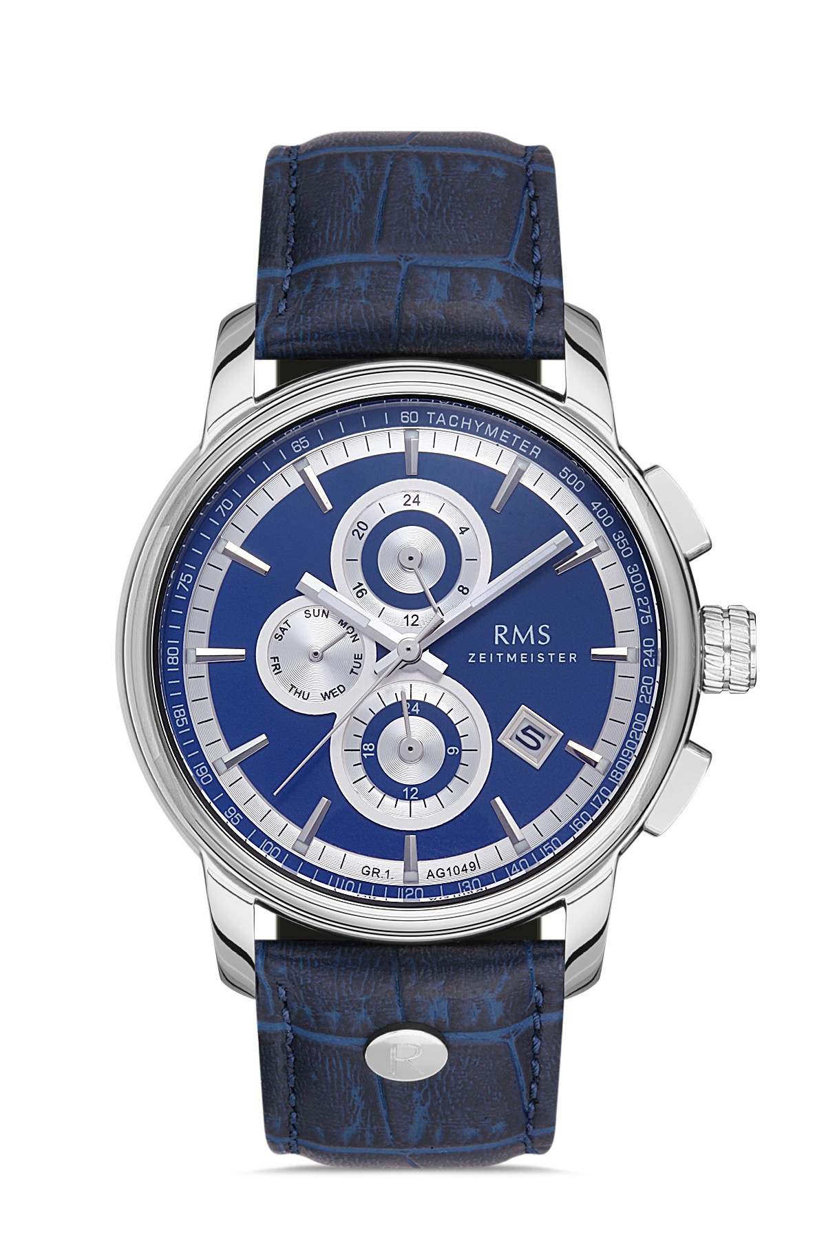 Erkek - Multi̇ Fonksi̇yon - Gümüş - Mavi̇ - Doğal Deri̇ Kordon - Mavi̇ - 3 Atm - Sertleşti̇ri̇lmi̇ş Mi̇neral Cam - Grand Romanson - 46