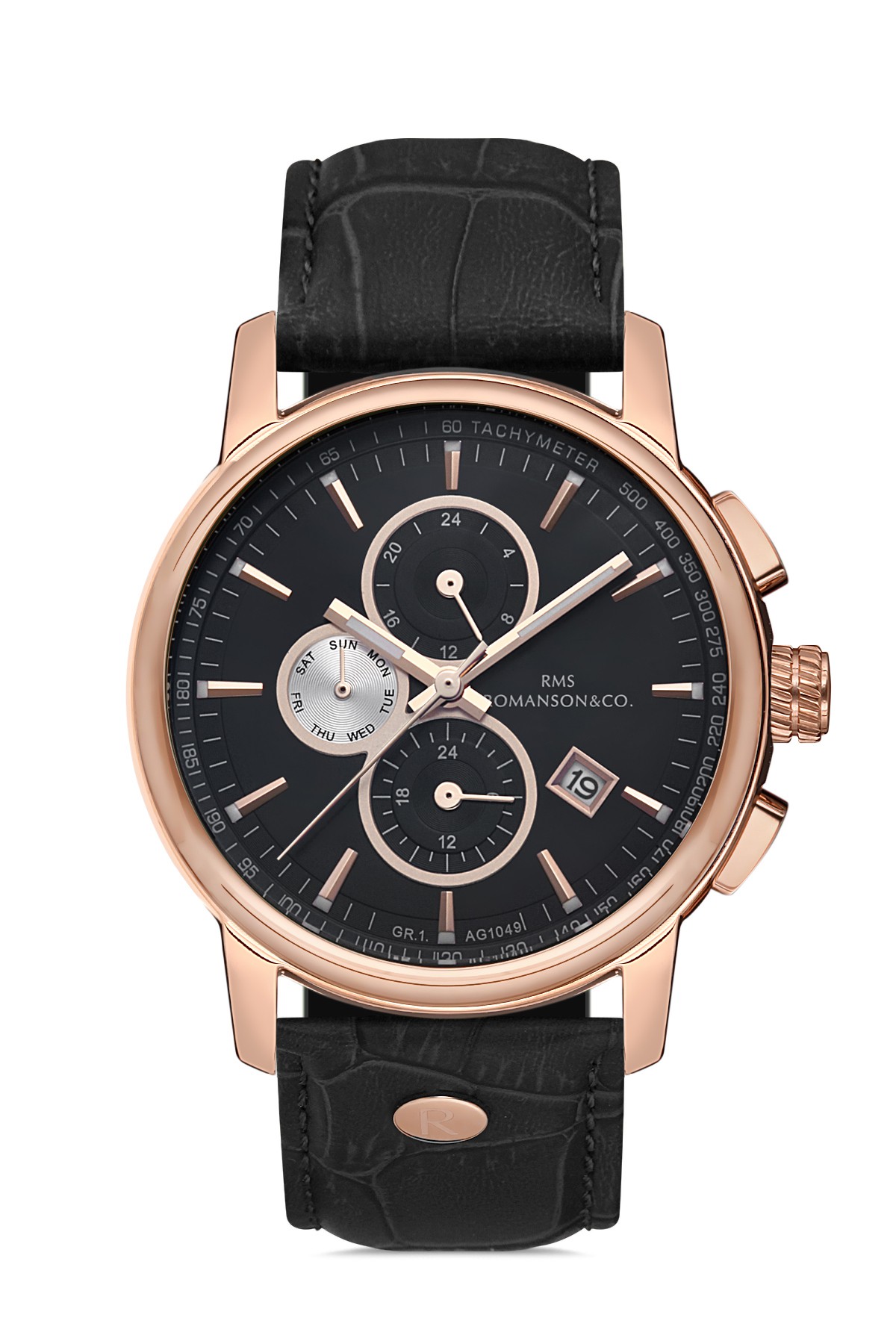 Erkek - Multi̇ Fonksi̇yon - Rose - Si̇yah - Doğal Deri̇ Kordon - Si̇yah - 3 Atm - Sertleşti̇ri̇lmi̇ş Mi̇neral Cam - Grand Romanson - 46
