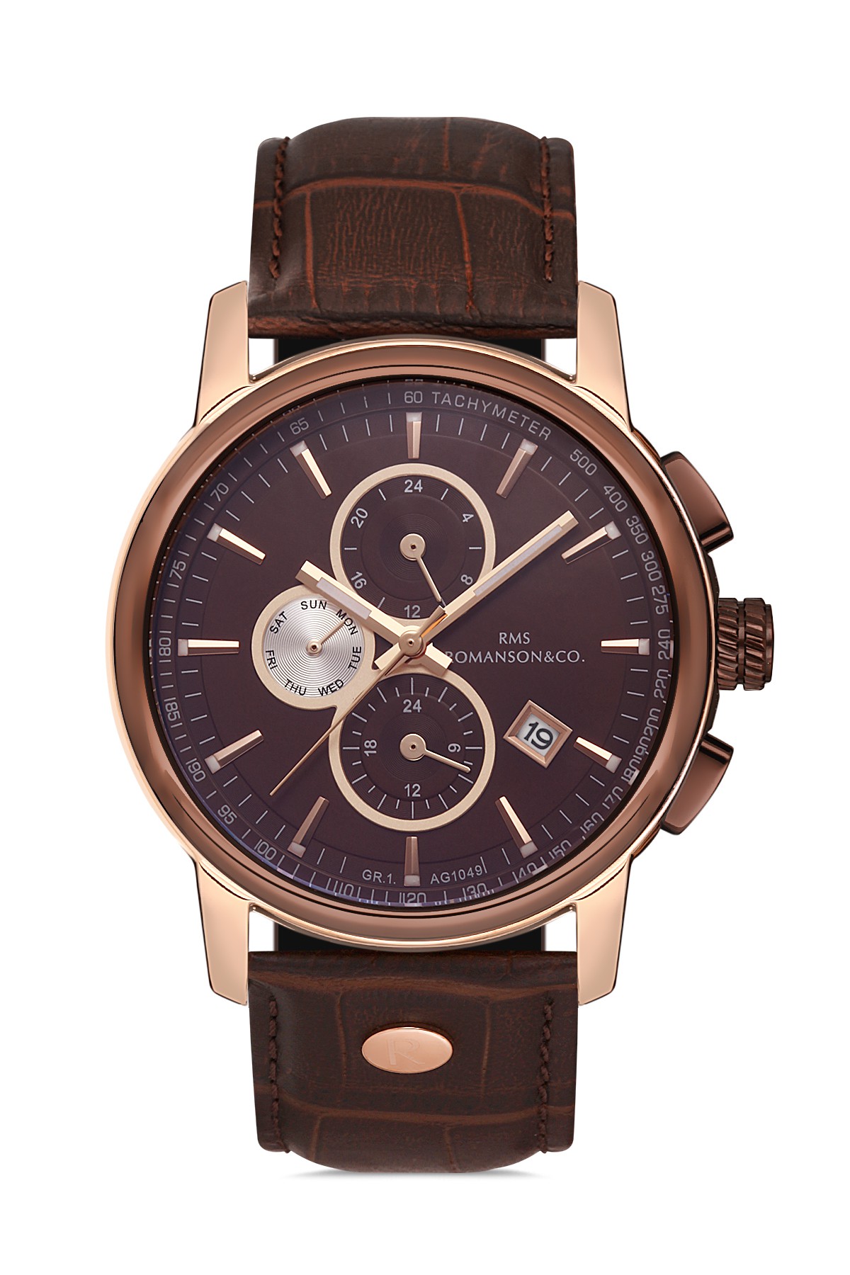 Erkek - Multi̇ Fonksi̇yon - Rose Kahverengi̇ - Kahverengi̇ - Doğal Deri̇ Kordon - Kahverengi̇ - 3 Atm - Sertleşti̇ri̇lmi̇ş Mi̇neral Cam - Grand Romanson - 46