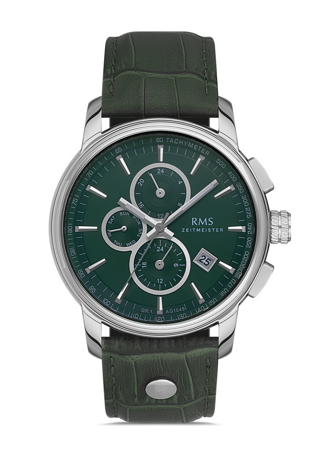 Erkek - Multi̇ Fonksi̇yon - Gümüş - Yeşi̇l - Doğal Deri̇ Kordon - Yeşi̇l - 3 Atm - Sertleşti̇ri̇lmi̇ş Mi̇neral Cam - Grand Romanson - 46