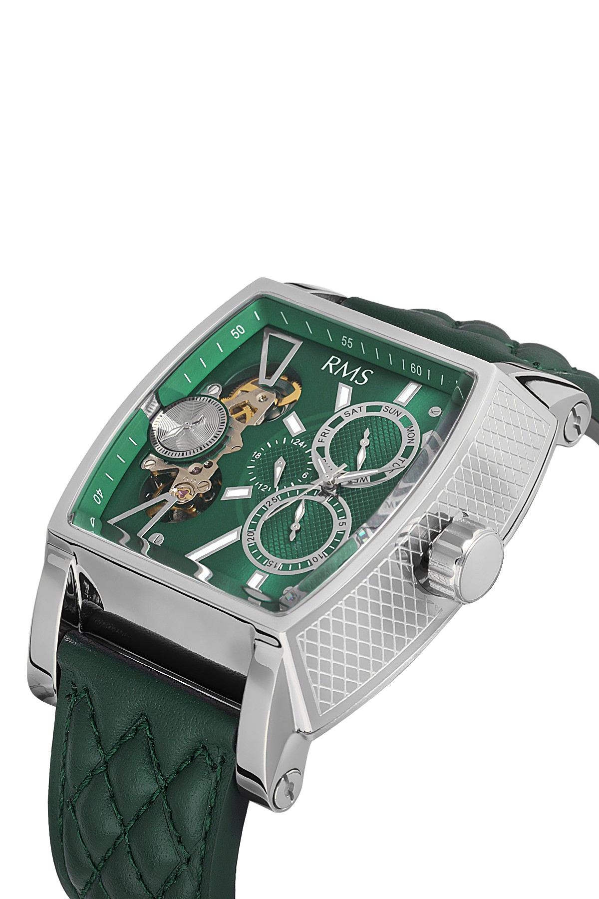 Erkek - Multi̇ Fonksi̇yon - Gümüş - Yeşi̇l - Doğal Deri̇ Kordon - Yeşi̇l - 5 Atm - Sertleşti̇ri̇lmi̇ş Mi̇neral Cam - Grand Romanson - 43*48