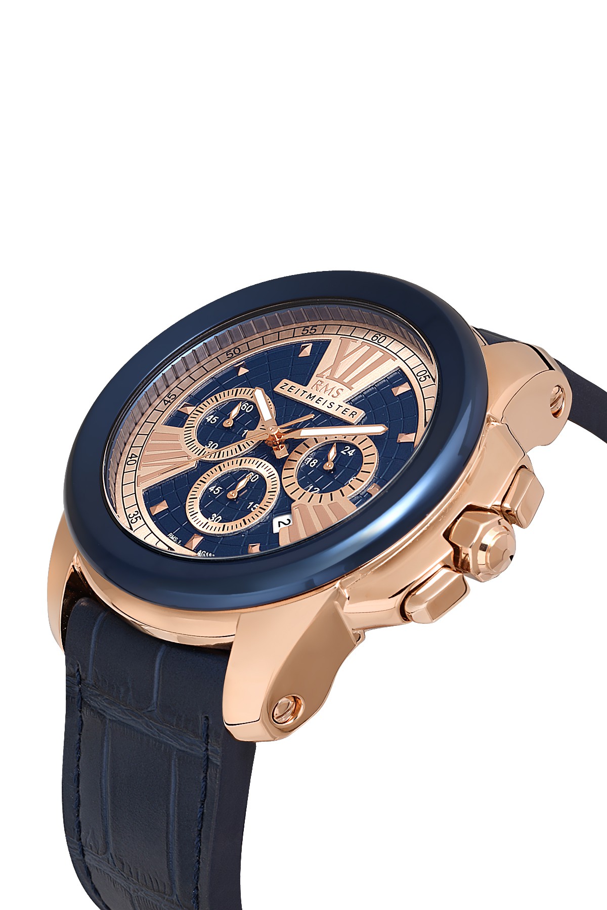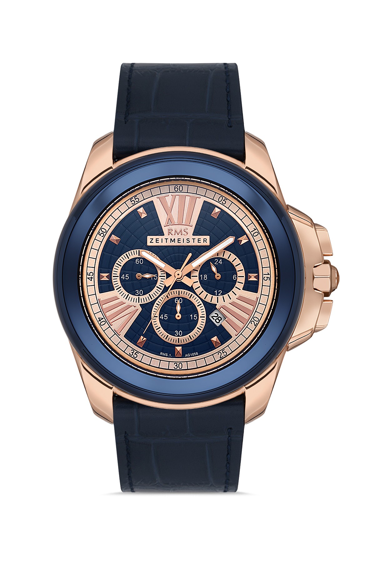 Erkek - Kronometre - Rose Mavi̇ - Mavi̇ - Doğal Deri̇ Kordon - Mavi̇ - 3 Atm - Sertleşti̇ri̇lmi̇ş Mi̇neral Cam - Grand Romanson - 47