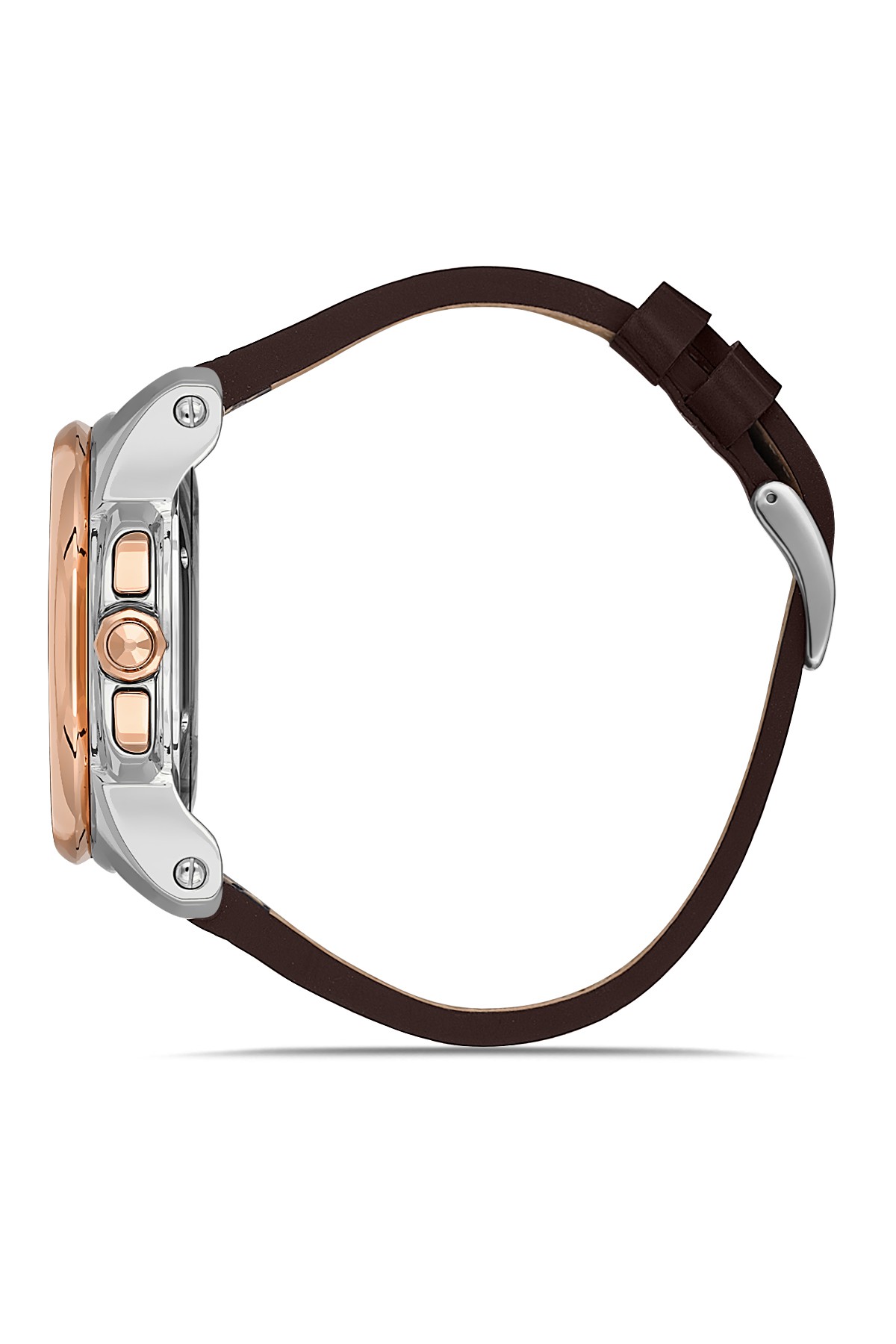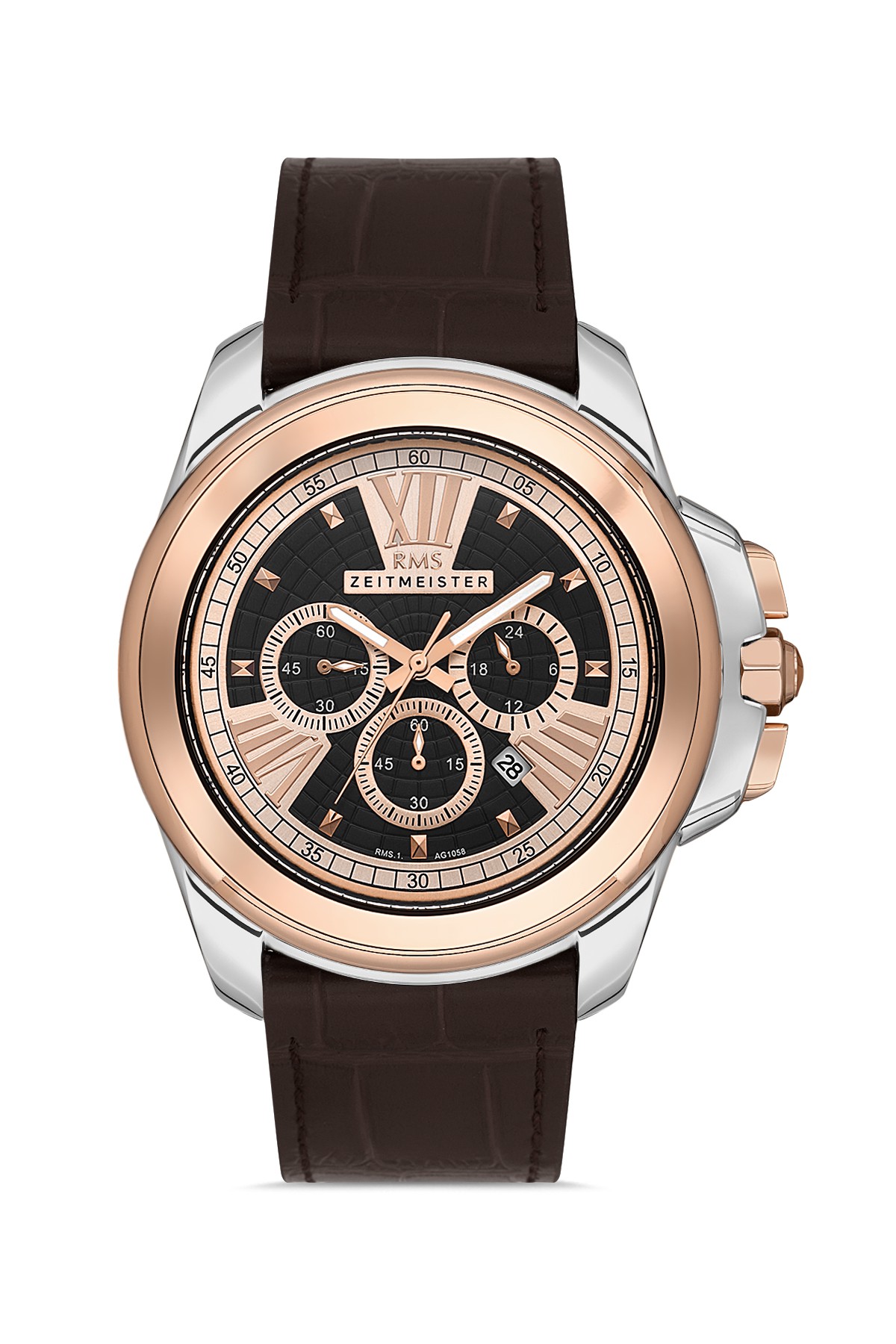 Erkek - Kronometre - Rose Beyaz - Si̇yah - Doğal Deri̇ Kordon - Kahverengi̇ - 3 Atm - Sertleşti̇ri̇lmi̇ş Mi̇neral Cam - Grand Romanson - 47
