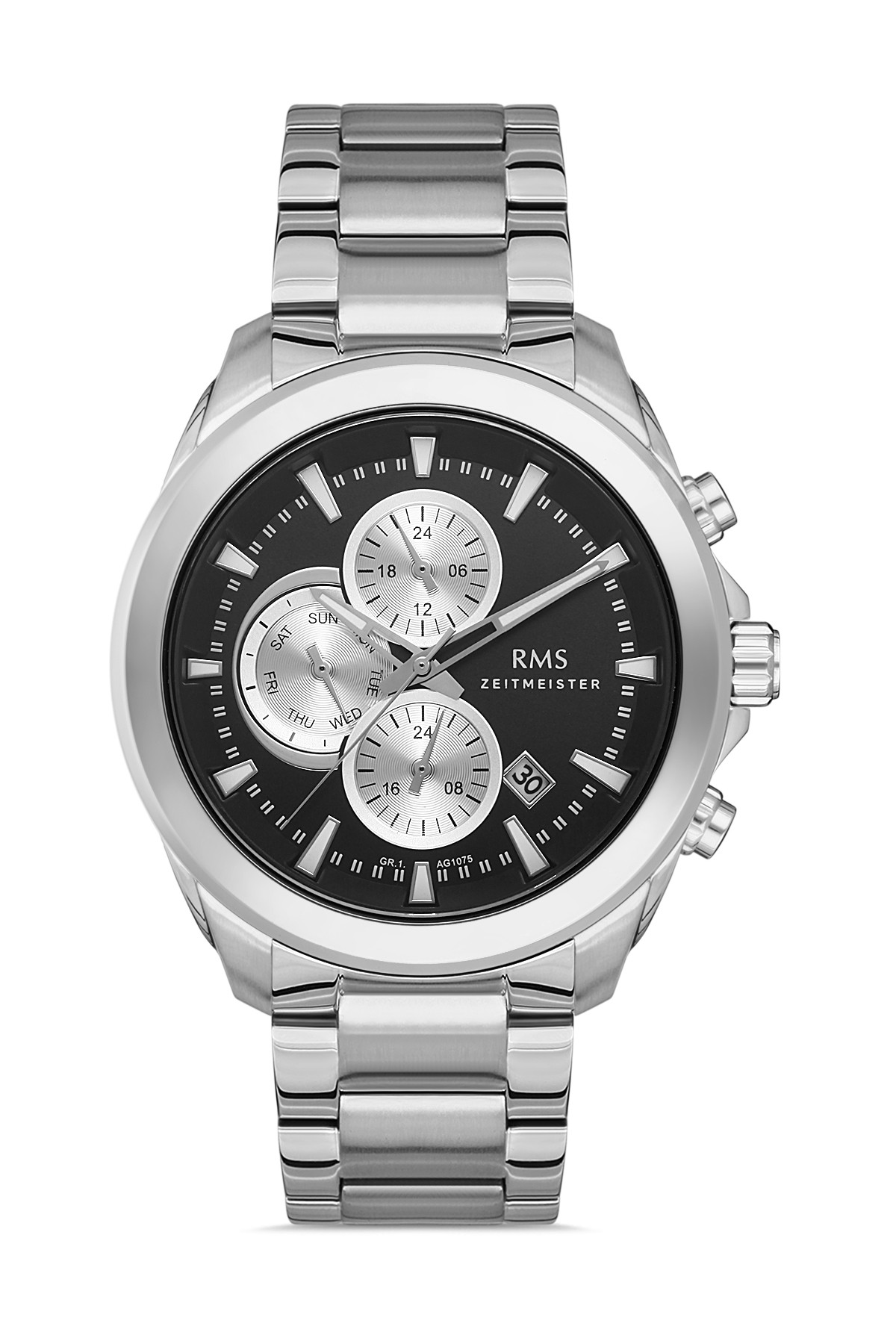Erkek - Multi̇ Fonksi̇yon - Gümüş - Si̇yah - Paslanmaz Masi̇f Çeli̇k - 3 Atm - Sertleşti̇ri̇lmi̇ş Mi̇neral Cam - Grand Romanson - 45