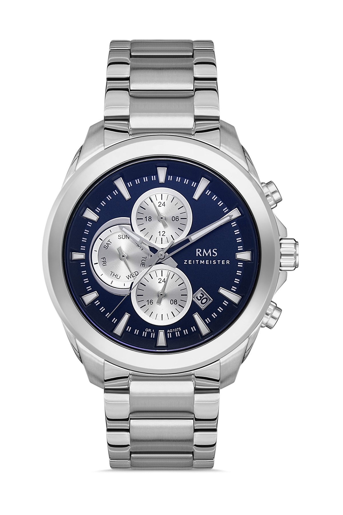 Erkek - Multi̇ Fonksi̇yon - Gümüş - Mavi̇ - Paslanmaz Masi̇f Çeli̇k - 3 Atm - Sertleşti̇ri̇lmi̇ş Mi̇neral Cam - Grand Romanson - 45