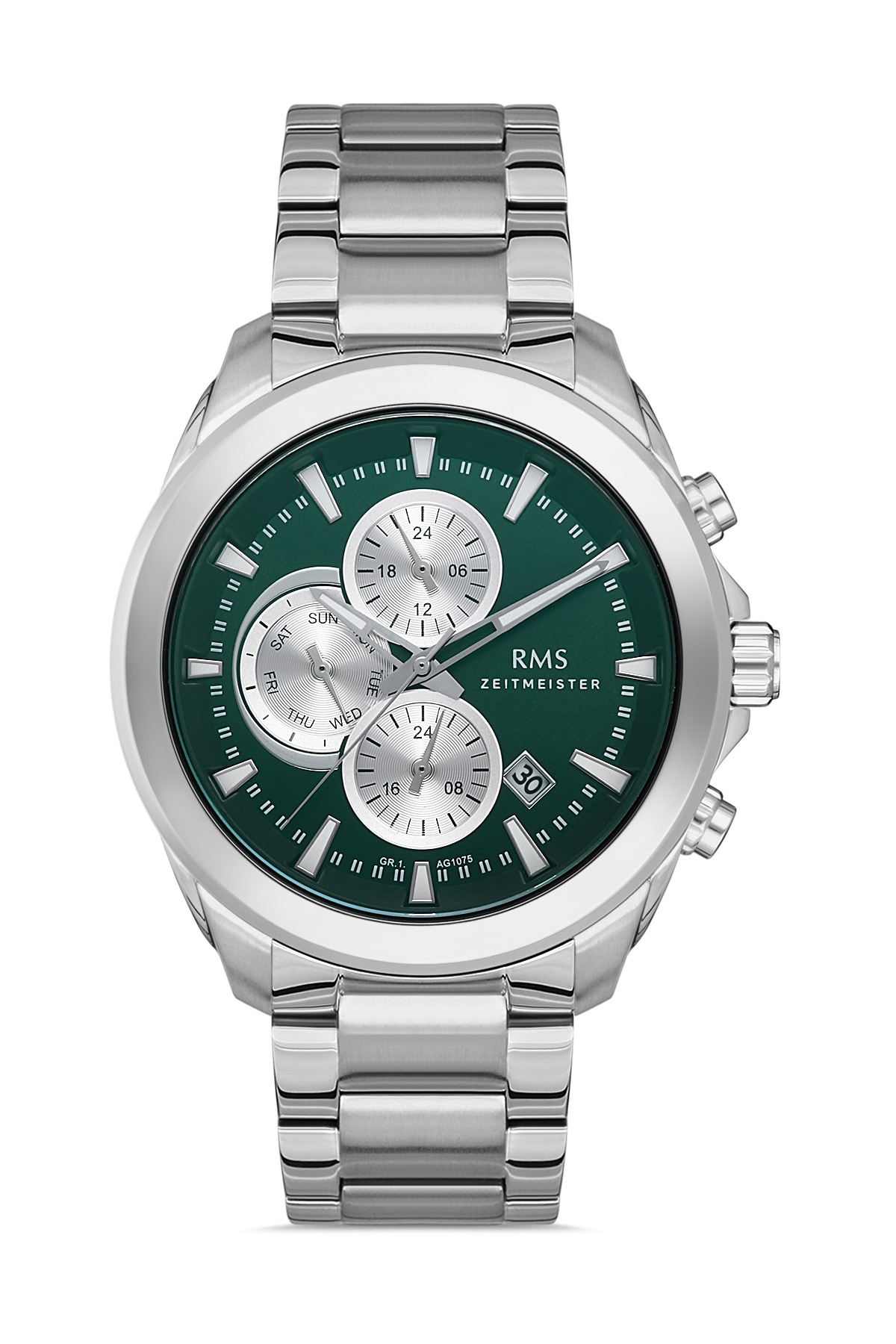 Erkek - Multi̇ Fonksi̇yon - Gümüş - Yeşi̇l - Paslanmaz Masi̇f Çeli̇k - 3 Atm - Sertleşti̇ri̇lmi̇ş Mi̇neral Cam - Grand Romanson - 45