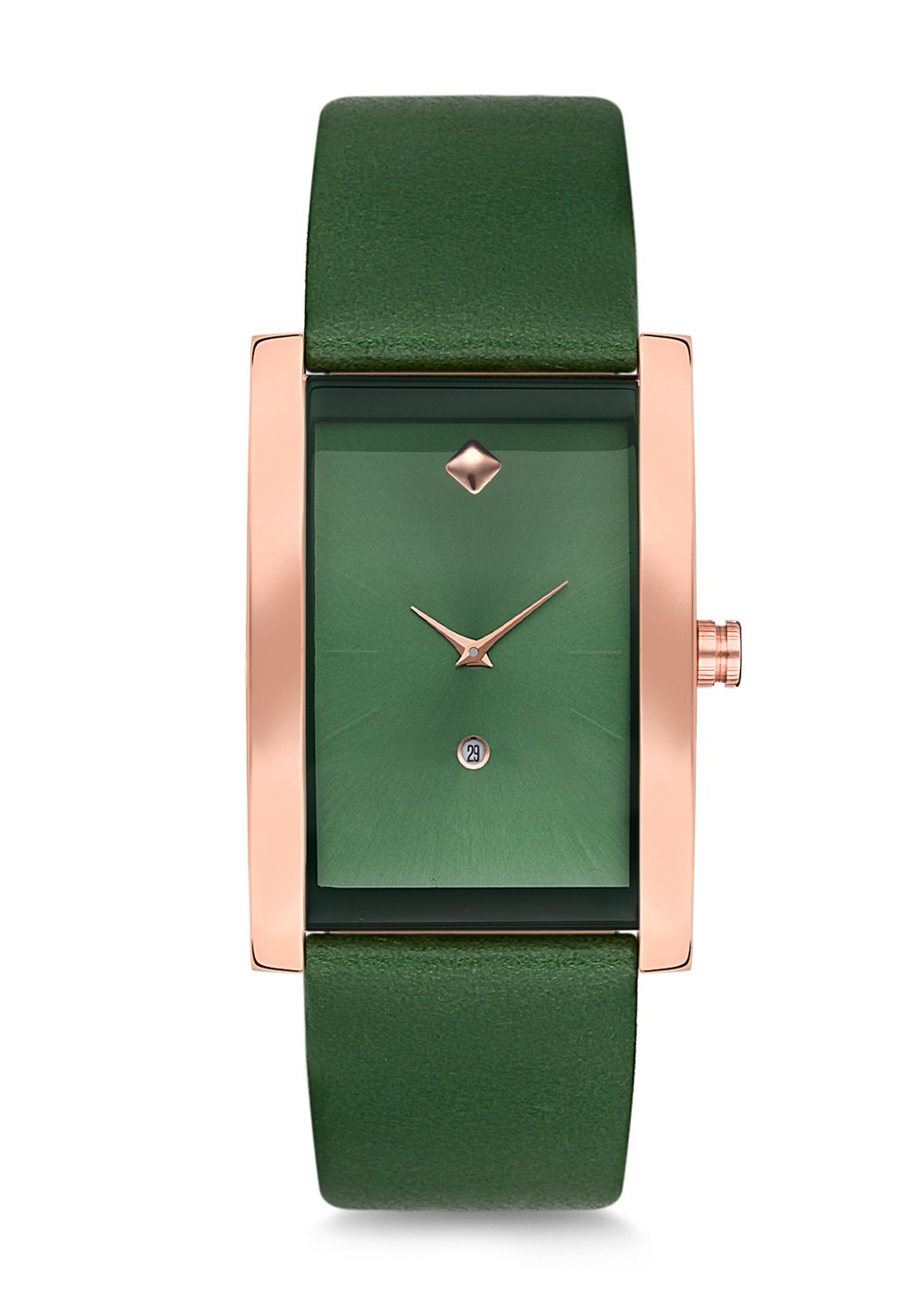Erkek - Takvi̇mli̇ - Rose - Yeşi̇l - Doğal Deri̇ Kordon - Yeşi̇l - 3 Atm - Sertleşti̇ri̇lmi̇ş Mi̇neral Cam - Grand Romanson - 32*44