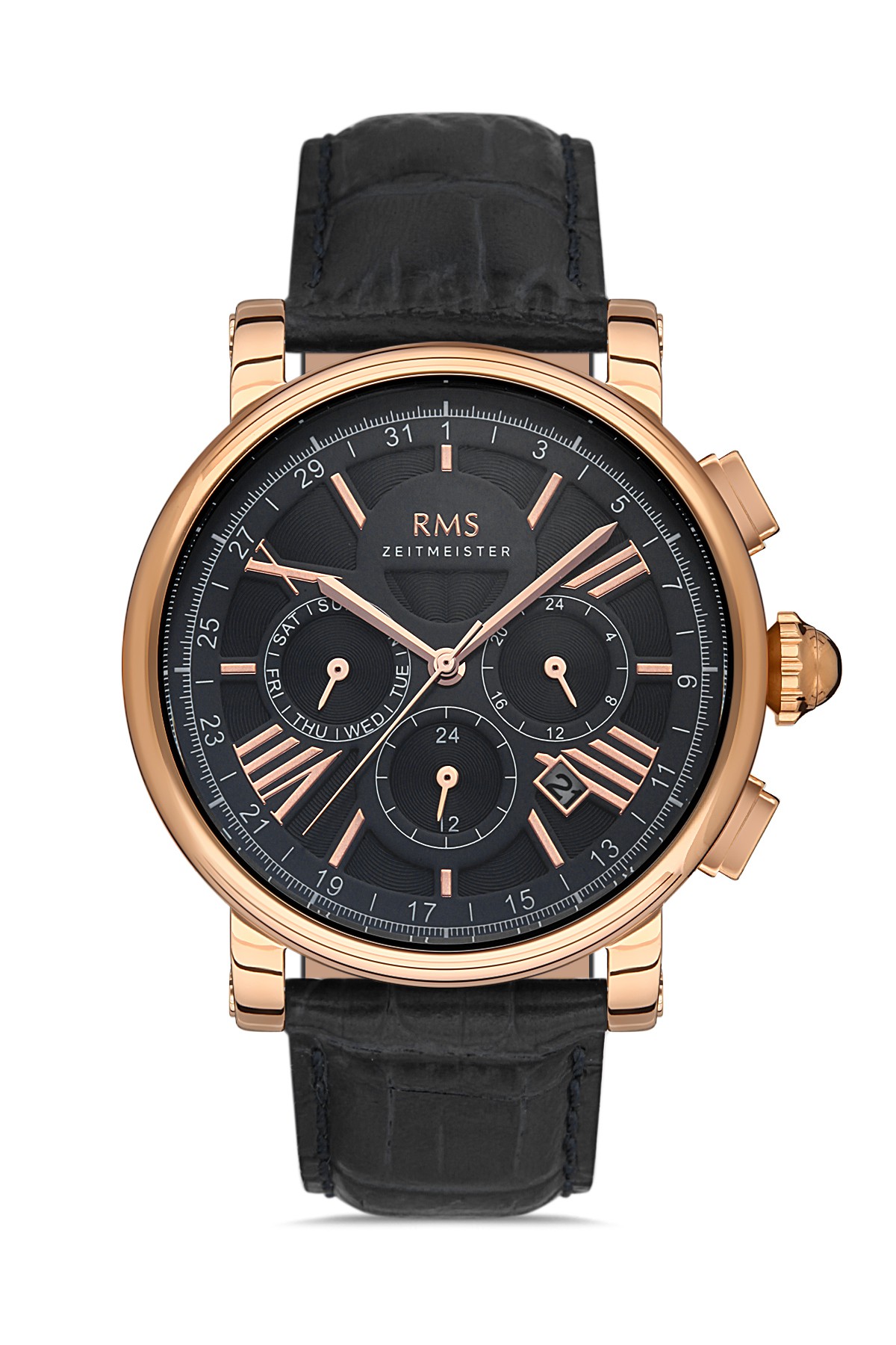 Erkek - Kronometre - Rose - Si̇yah - Doğal Deri̇ Kordon - Si̇yah - 3 Atm - Sertleşti̇ri̇lmi̇ş Mi̇neral Cam - Grand Romanson - 44