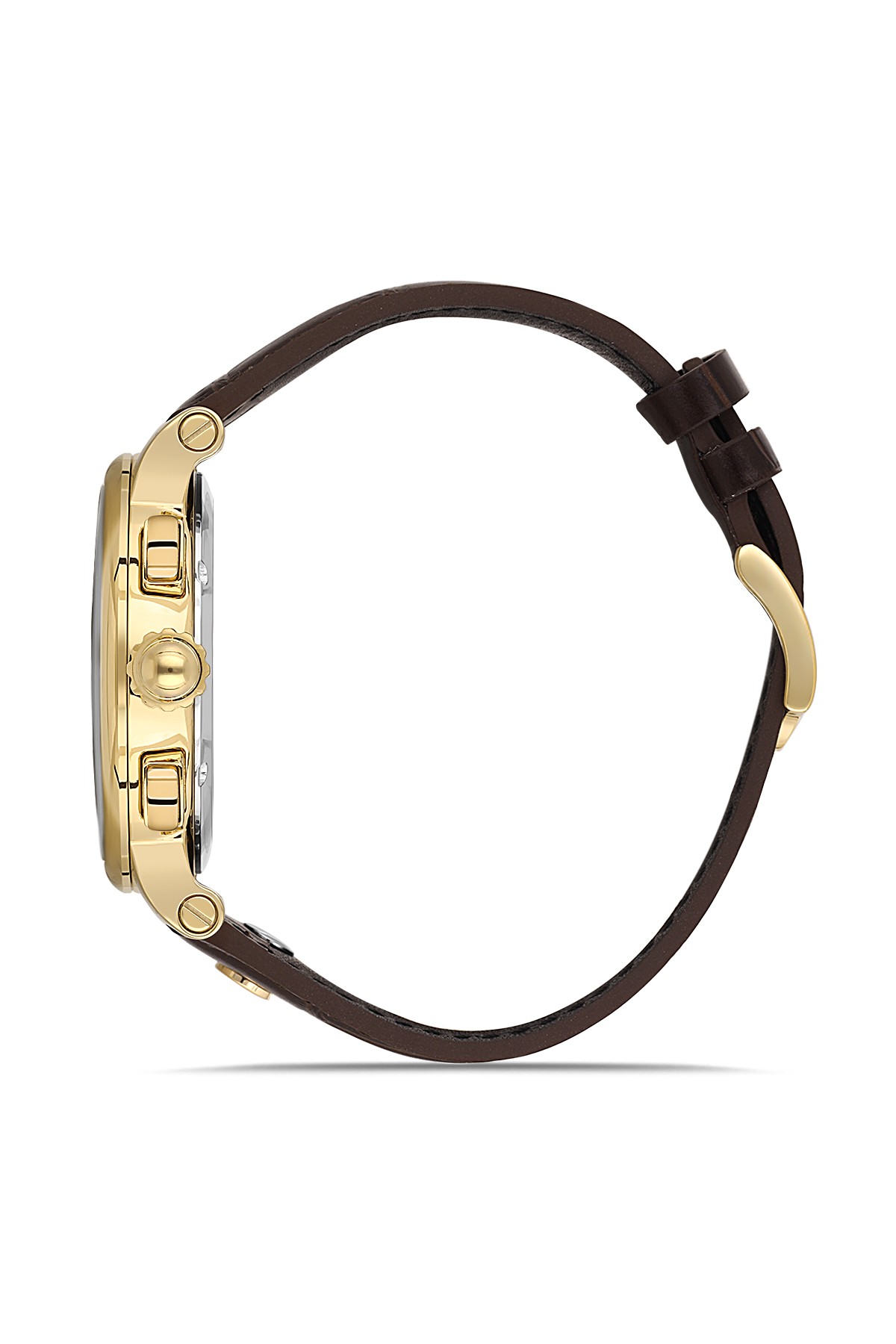Erkek - Kronometre - Sari - Gümüş - Doğal Deri̇ Kordon - Kahverengi̇ - 3 Atm - Sertleşti̇ri̇lmi̇ş Mi̇neral Cam - Grand Romanson - 44