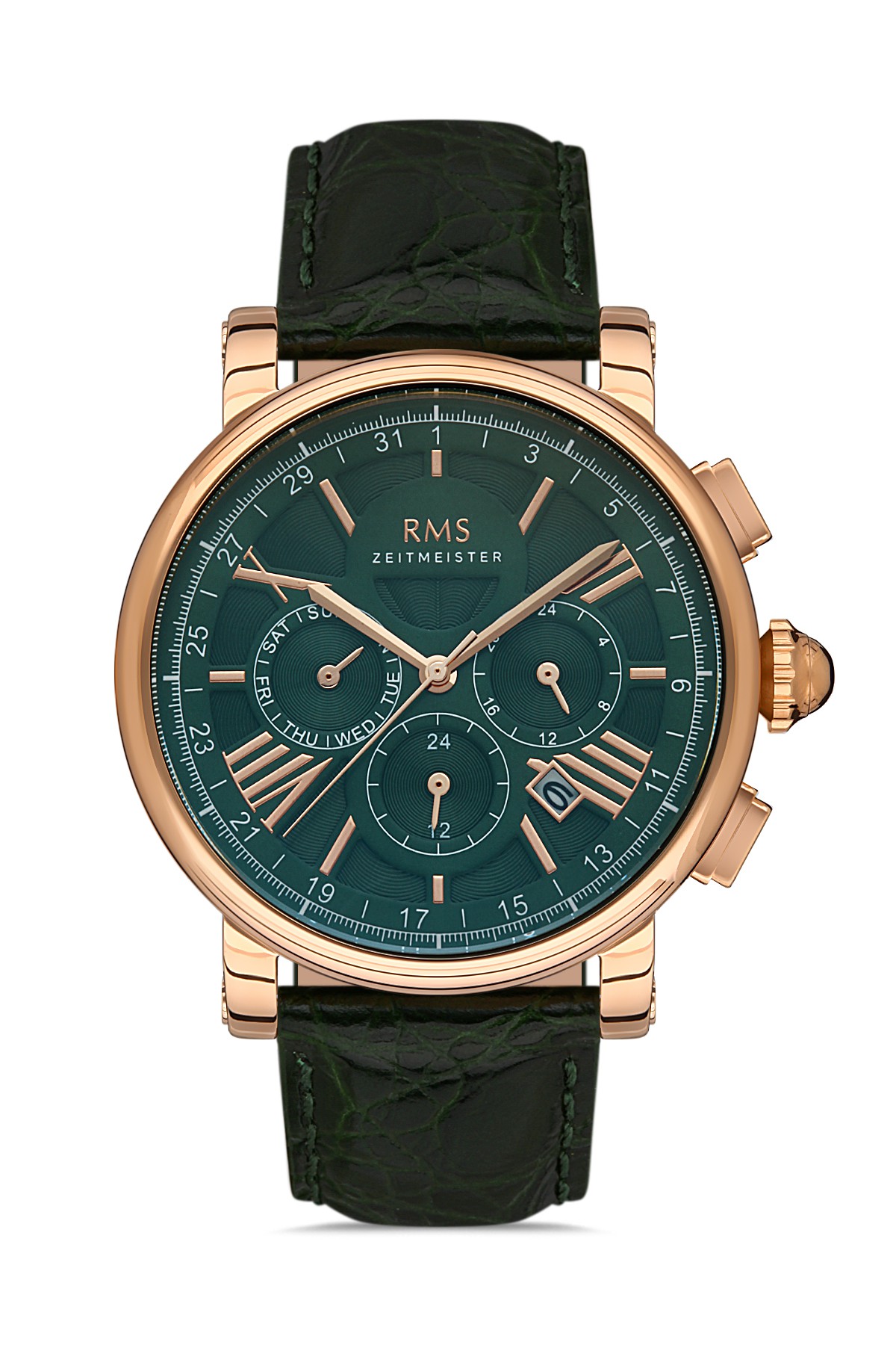 Erkek - Kronometre - Rose - Yeşi̇l - Doğal Deri̇ Kordon - Yeşi̇l - 3 Atm - Sertleşti̇ri̇lmi̇ş Mi̇neral Cam - Grand Romanson - 44
