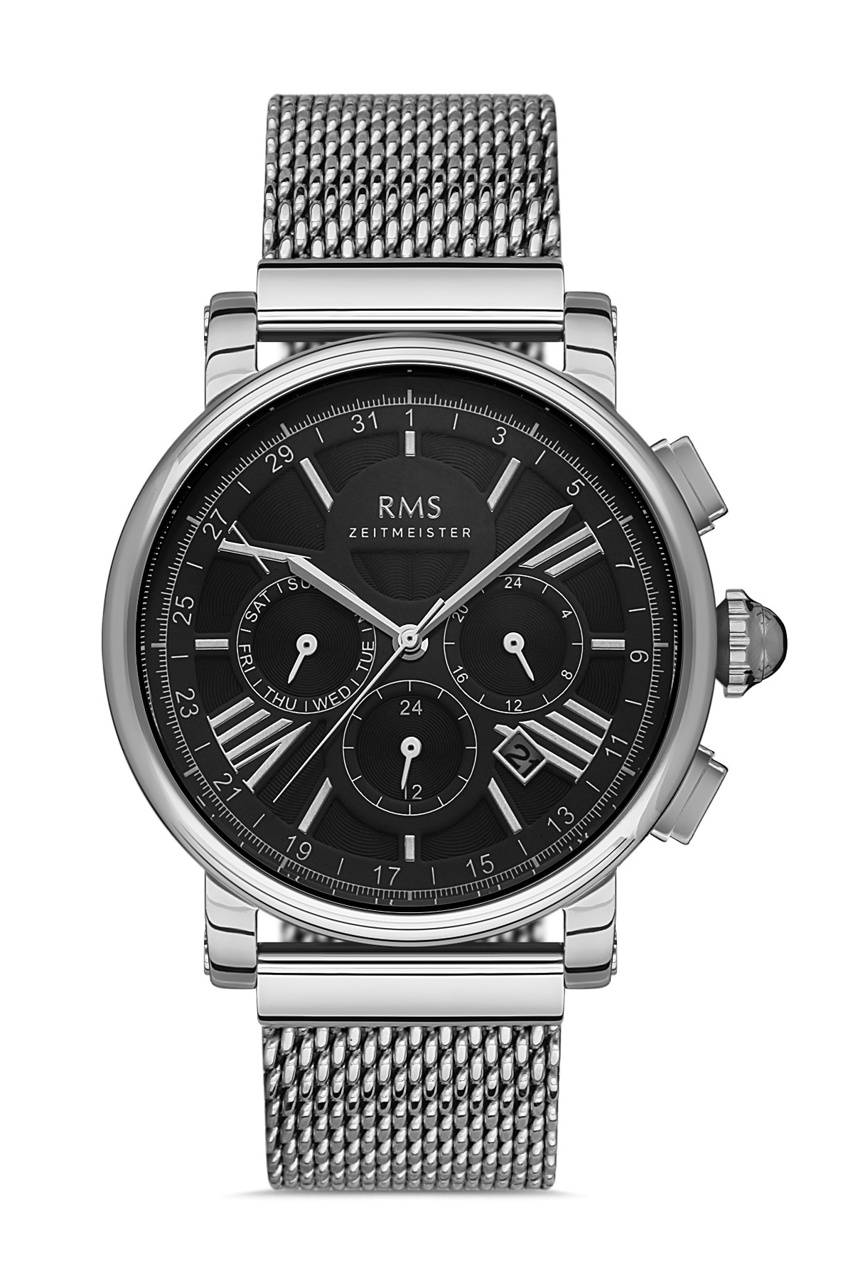Erkek - Multi̇ Fonksi̇yon - Gümüş - Si̇yah - Çeli̇k Örme Kordon - 3 Atm - Sertleşti̇ri̇lmi̇ş Mi̇neral Cam - Grand Romanson