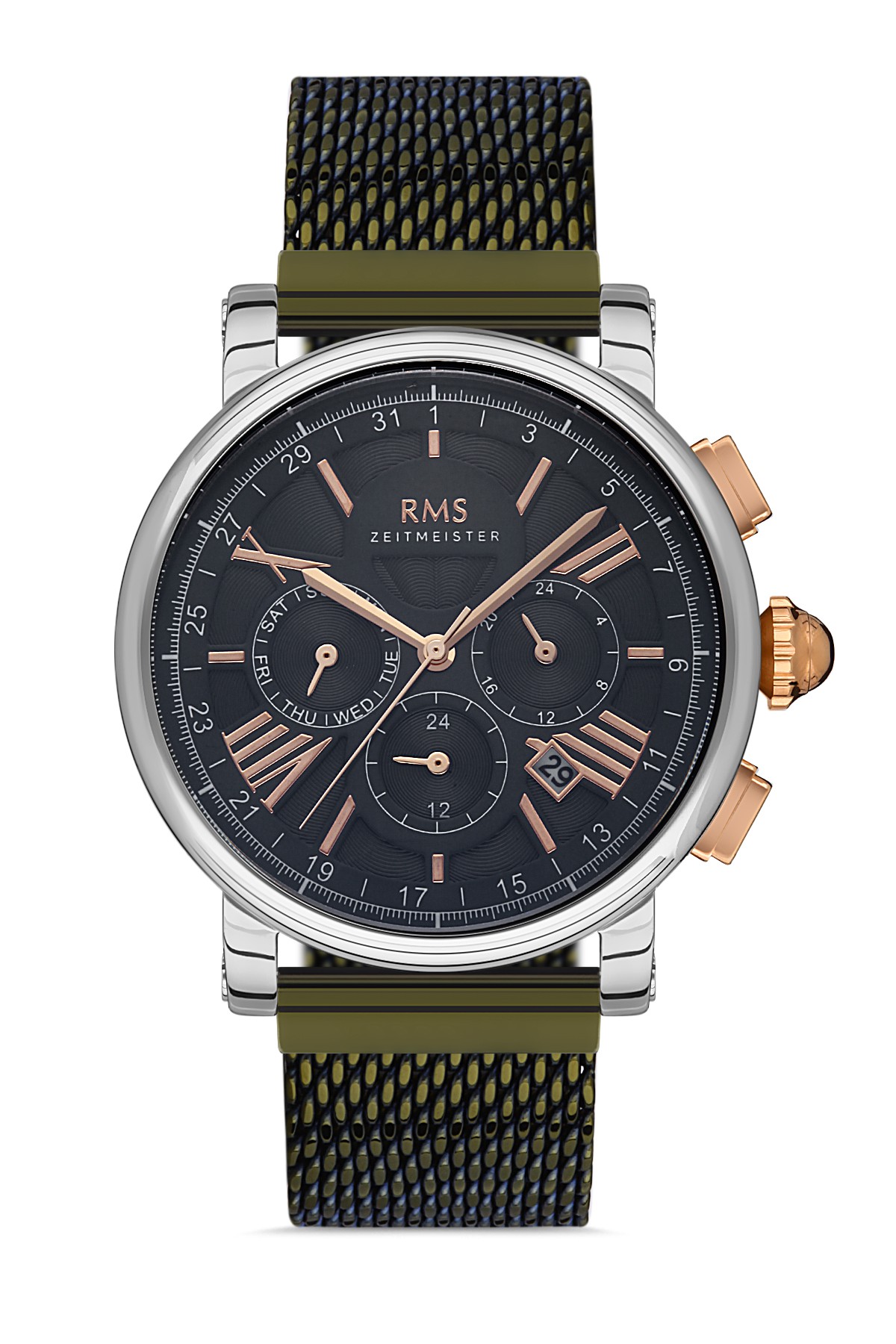Erkek - Multi̇ Fonksi̇yon - Gümüş - Yeşi̇l - Çeli̇k Örme Kordon - 3 Atm - Sertleşti̇ri̇lmi̇ş Mi̇neral Cam - Grand Romanson