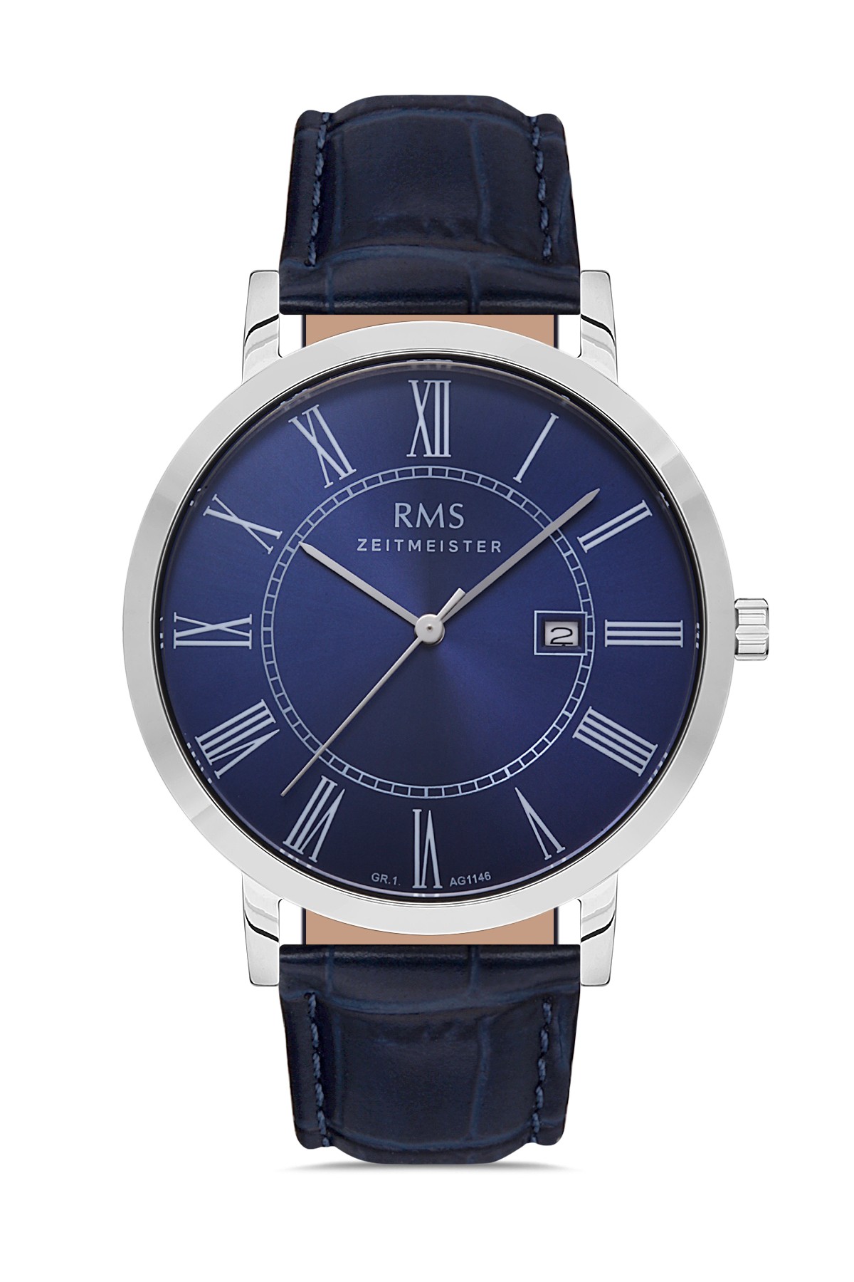Erkek - Takvi̇mli̇ - Gümüş - Mavi̇ - Doğal Deri̇ Kordon - Mavi̇ - 3 Atm - Sertleşti̇ri̇lmi̇ş Mi̇neral Cam - Grand Romanson