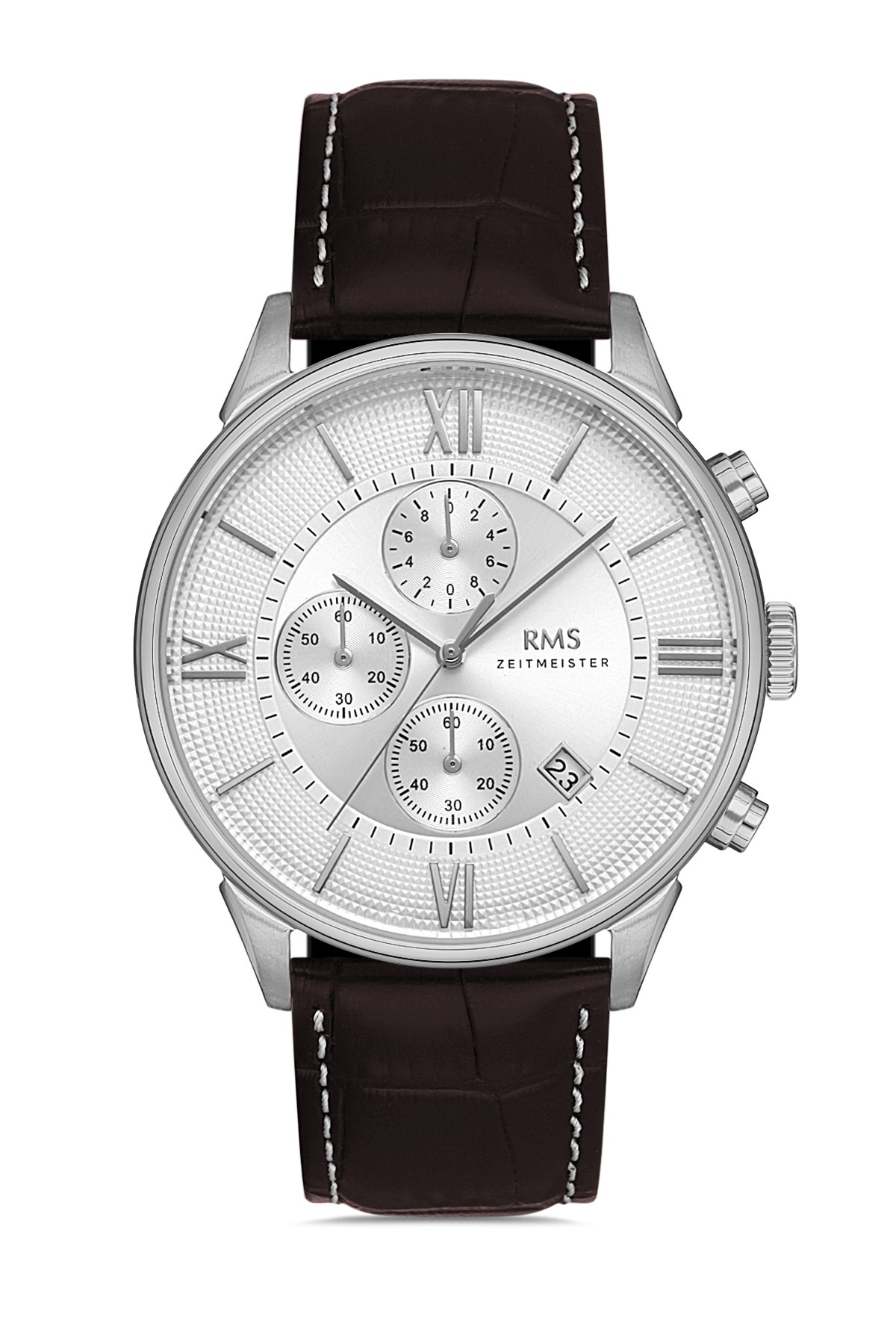Erkek - Kronometre - Gümüş - Gümüş - Doğal Deri̇ Kordon - Kahverengi̇ - 5 Atm - Sertleşti̇ri̇lmi̇ş Mi̇neral Cam - Grand Romanson - 44
