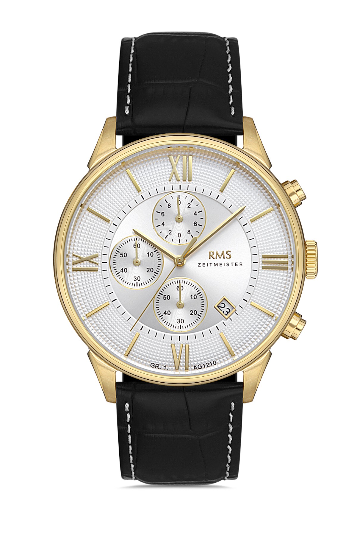 Erkek - Kronometre - Sari - Gümüş - Doğal Deri̇ Kordon - Si̇yah - 5 Atm - Sertleşti̇ri̇lmi̇ş Mi̇neral Cam - Grand Romanson - 44