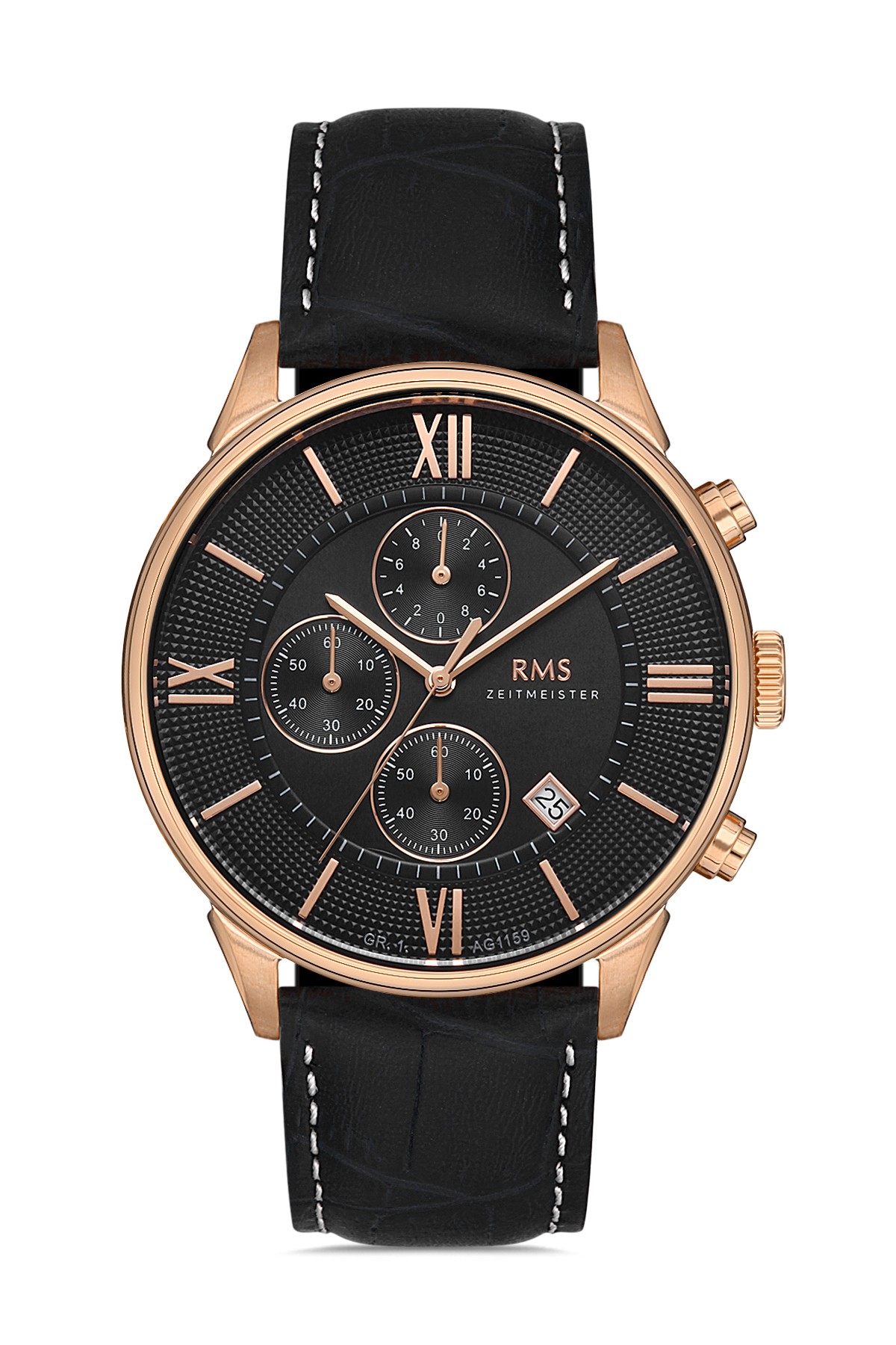 Erkek - Kronometre - Rose - Si̇yah - Doğal Deri̇ Kordon - Si̇yah - 5 Atm - Sertleşti̇ri̇lmi̇ş Mi̇neral Cam - Grand Romanson - 44