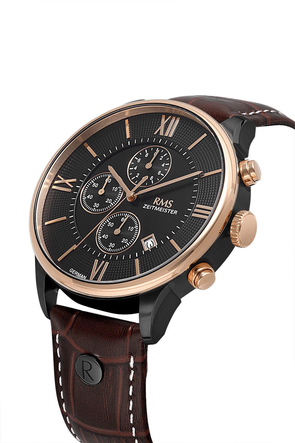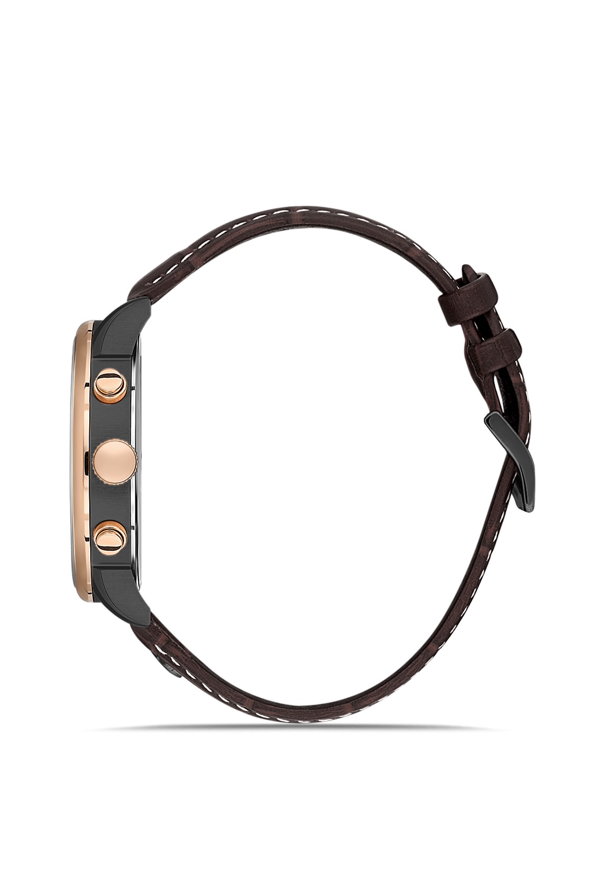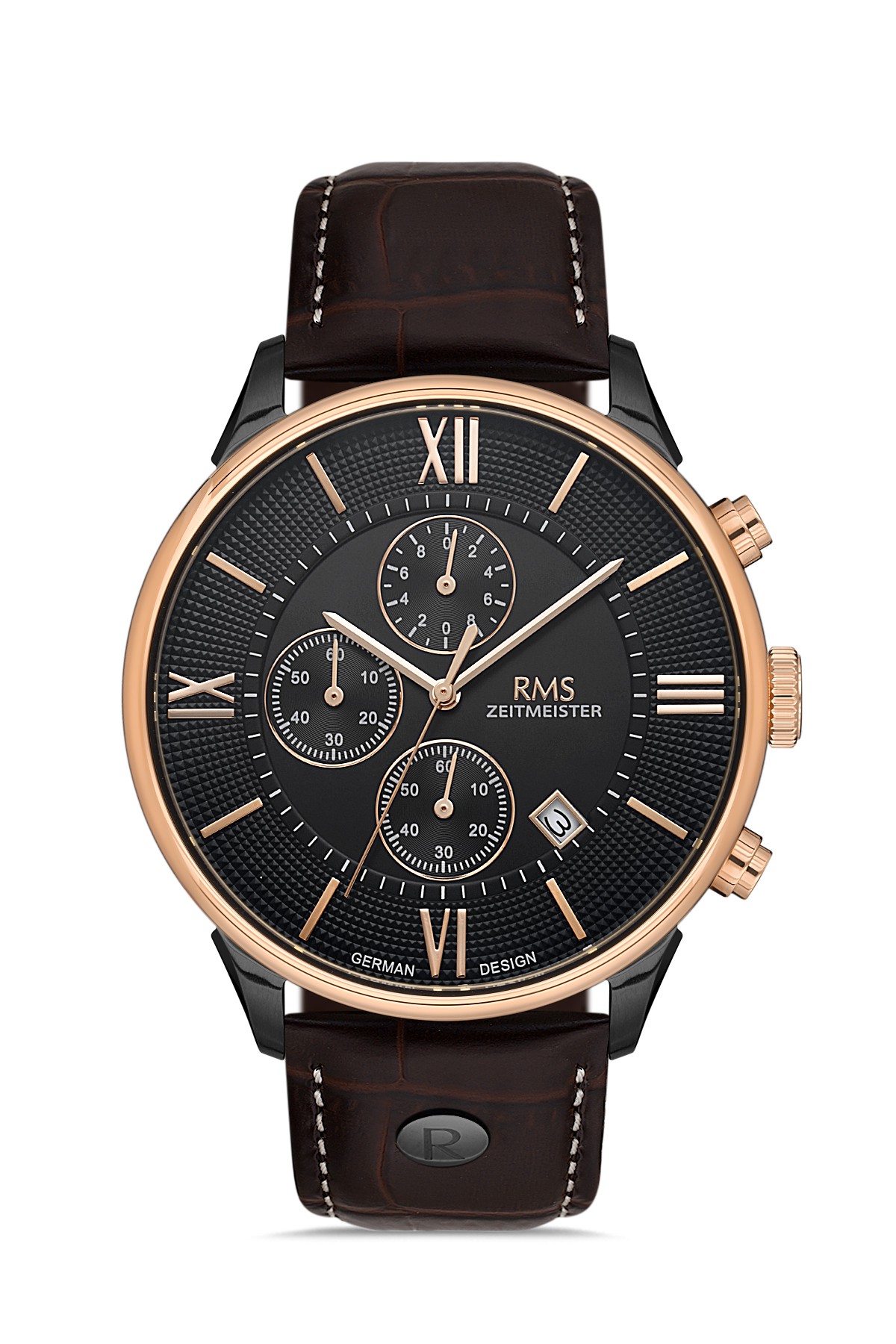 Erkek - Kronometre - Rose Si̇yah - Si̇yah - Doğal Deri̇ Kordon - Kahverengi̇ - 5 Atm - Sertleşti̇ri̇lmi̇ş Mi̇neral Cam - Grand Romanson - 44