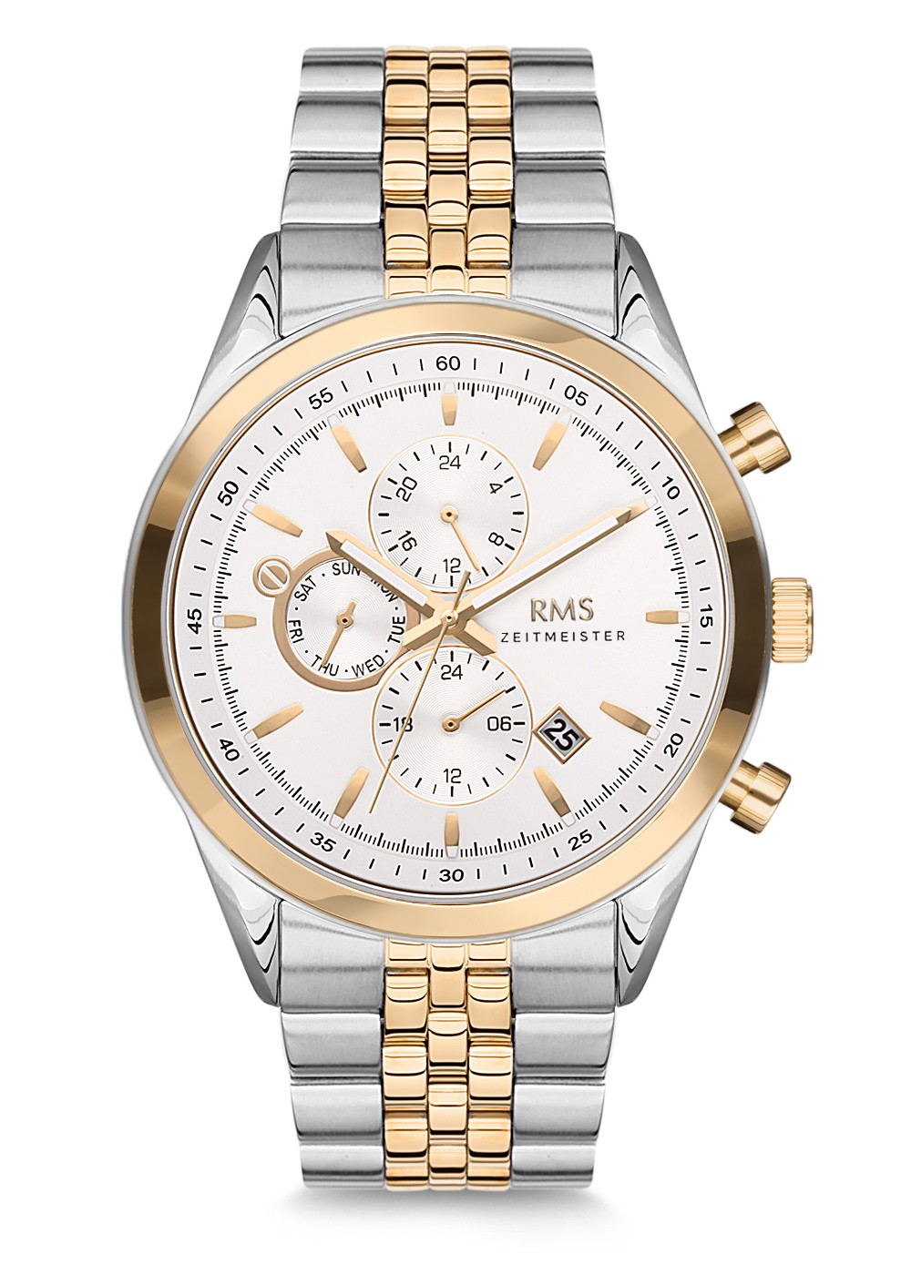 Erkek - Multi̇ Fonksi̇yon - Sari Beyaz - Gümüş - Paslanmaz Masi̇f Çeli̇k - 5 Atm - Sertleşti̇ri̇lmi̇ş Mi̇neral Cam - Grand Romanson - 45