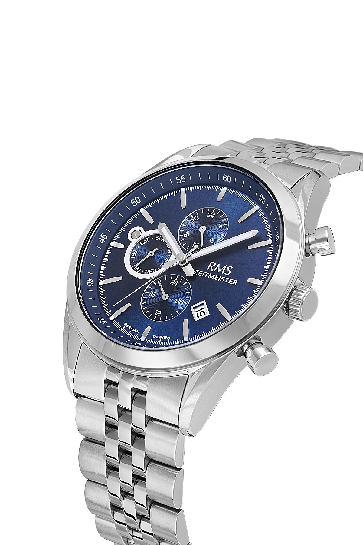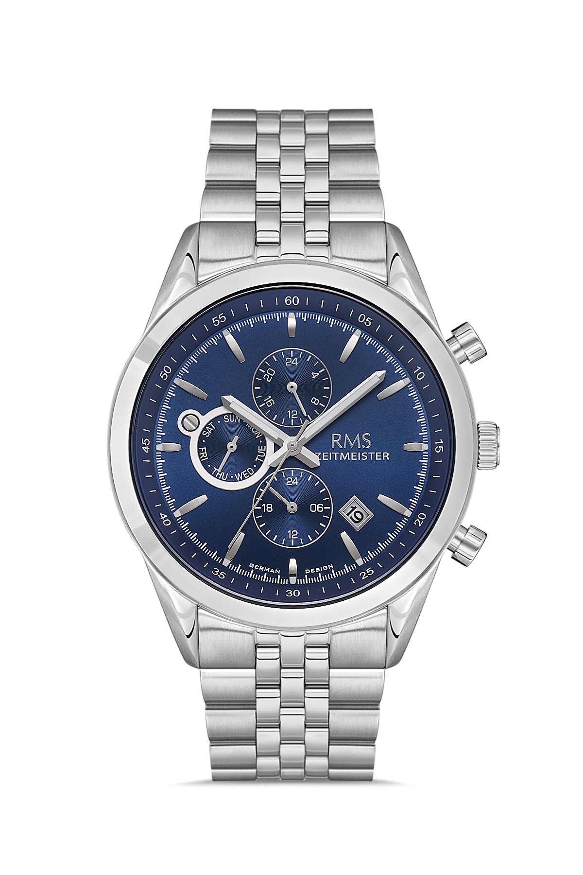 Erkek - Multi̇ Fonksi̇yon - Gümüş - Mavi̇ - Paslanmaz Masi̇f Çeli̇k - 5 Atm - Sertleşti̇ri̇lmi̇ş Mi̇neral Cam - Grand Romanson - 45