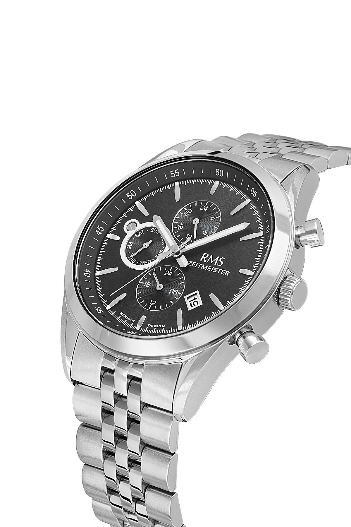Erkek - Multi̇ Fonksi̇yon - Gümüş - Si̇yah - Paslanmaz Masi̇f Çeli̇k - 5 Atm - Sertleşti̇ri̇lmi̇ş Mi̇neral Cam - Grand Romanson - 45