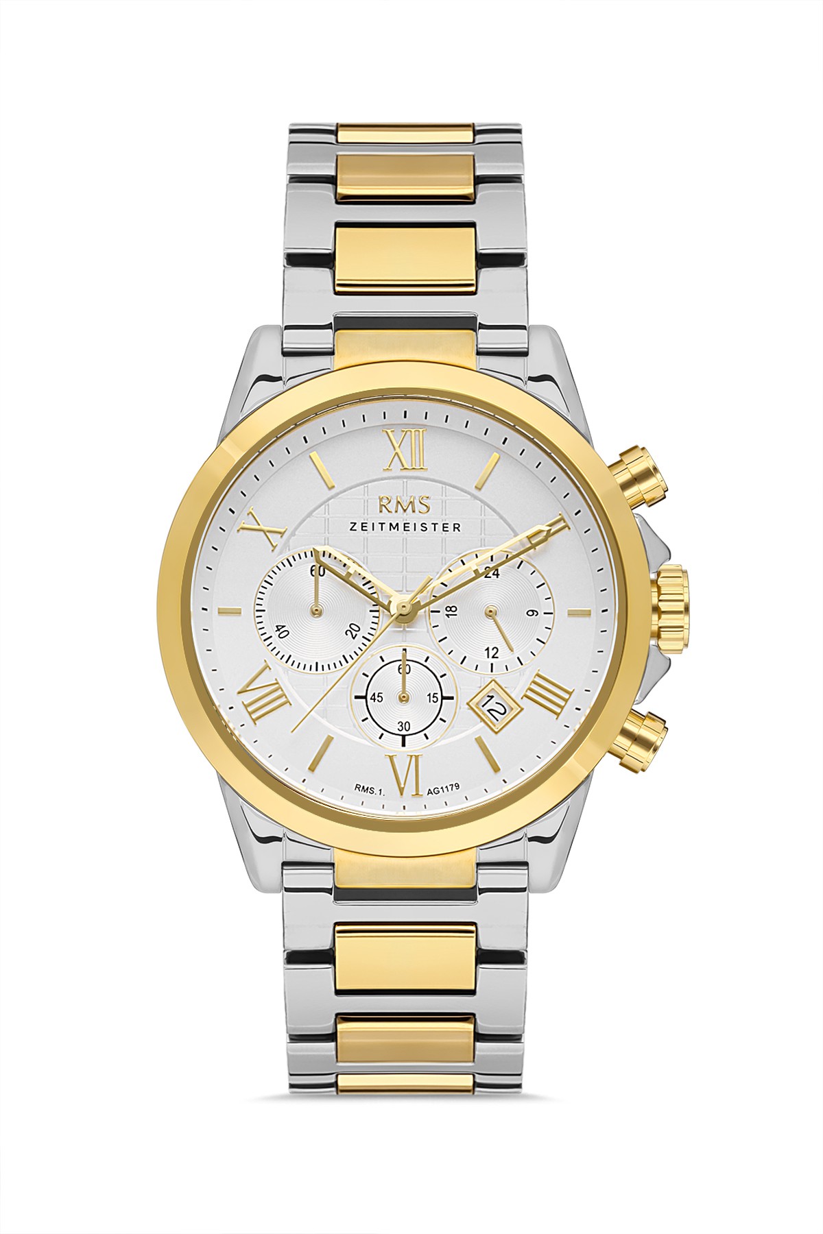 Erkek - Multi̇ Fonksi̇yon - Sari Beyaz - Gümüş - Paslanmaz Masi̇f Çeli̇k - 3 Atm - Sertleşti̇ri̇lmi̇ş Mi̇neral Cam - Grand Romanson - 43