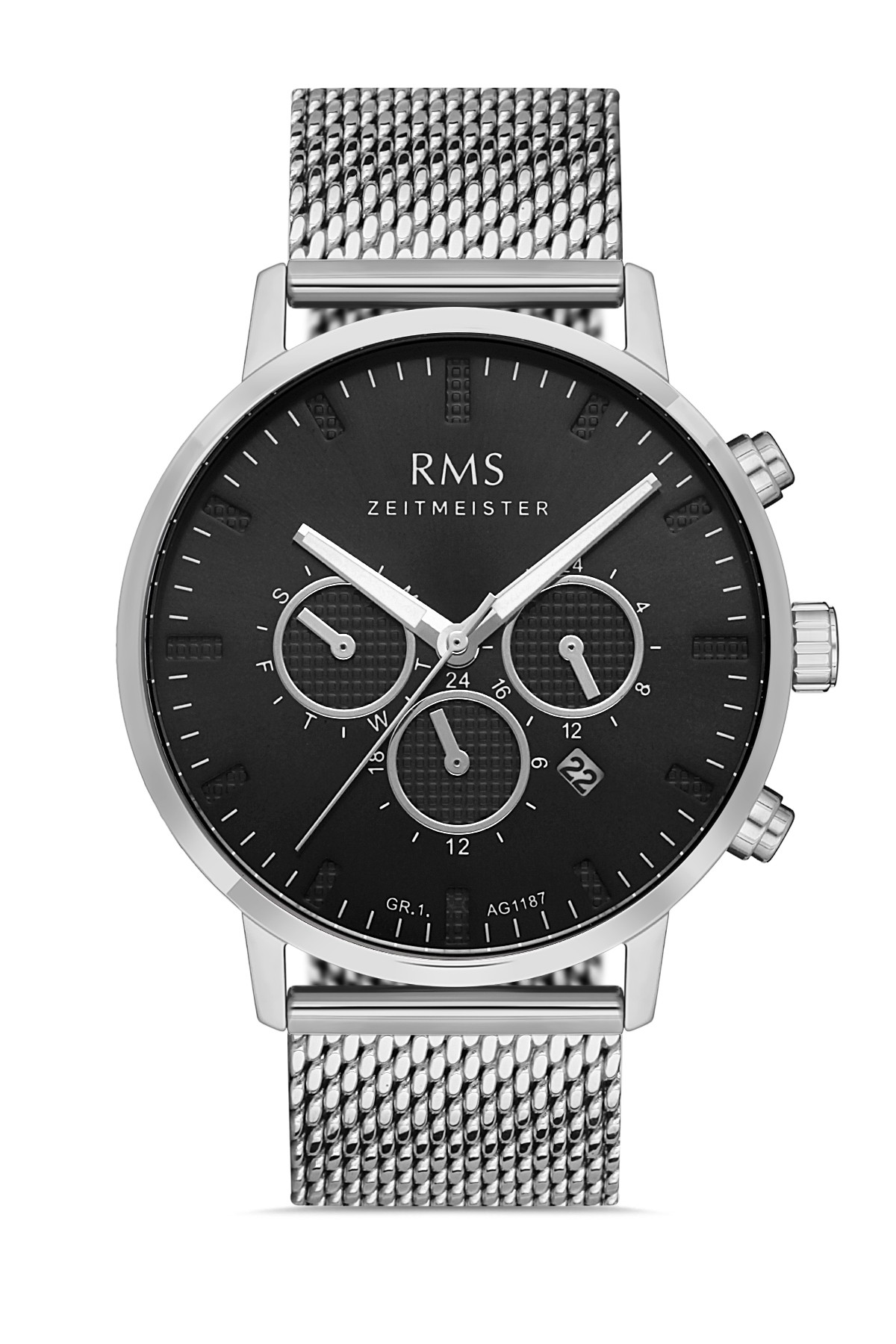 Erkek - Multi̇ Fonksi̇yon - Gümüş - Si̇yah - Çeli̇k Örme Kordon - 3 Atm - Sertleşti̇ri̇lmi̇ş Mi̇neral Cam - Grand Romanson