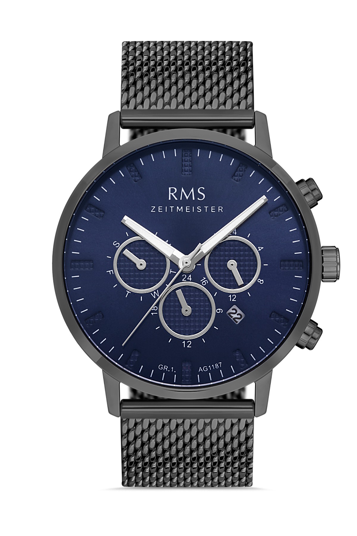 Erkek - Multi̇ Fonksi̇yon - Gun - Mavi̇ - Çeli̇k Örme Kordon - 3 Atm - Sertleşti̇ri̇lmi̇ş Mi̇neral Cam - Grand Romanson