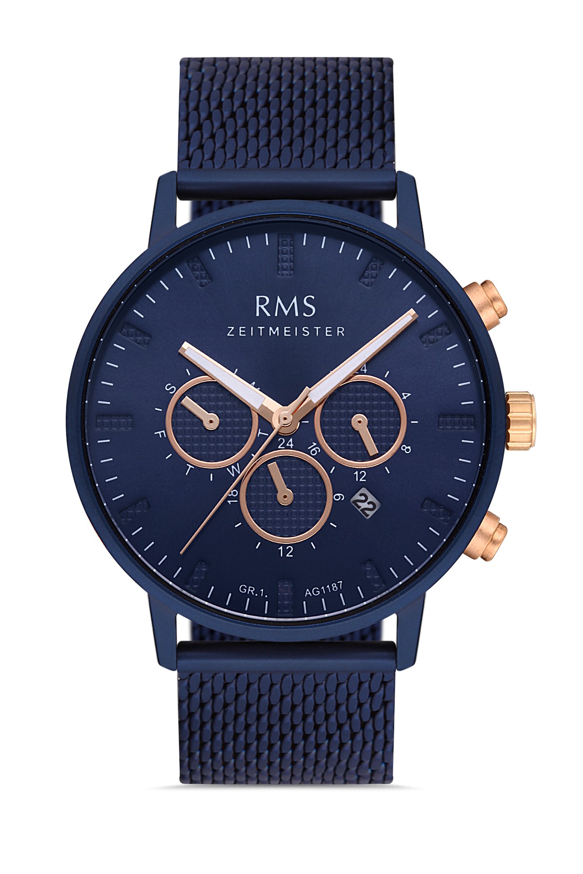 Erkek - Multi̇ Fonksi̇yon - Mavi̇ - Mavi̇ - Çeli̇k Örme Kordon - 3 Atm - Sertleşti̇ri̇lmi̇ş Mi̇neral Cam - Grand Romanson