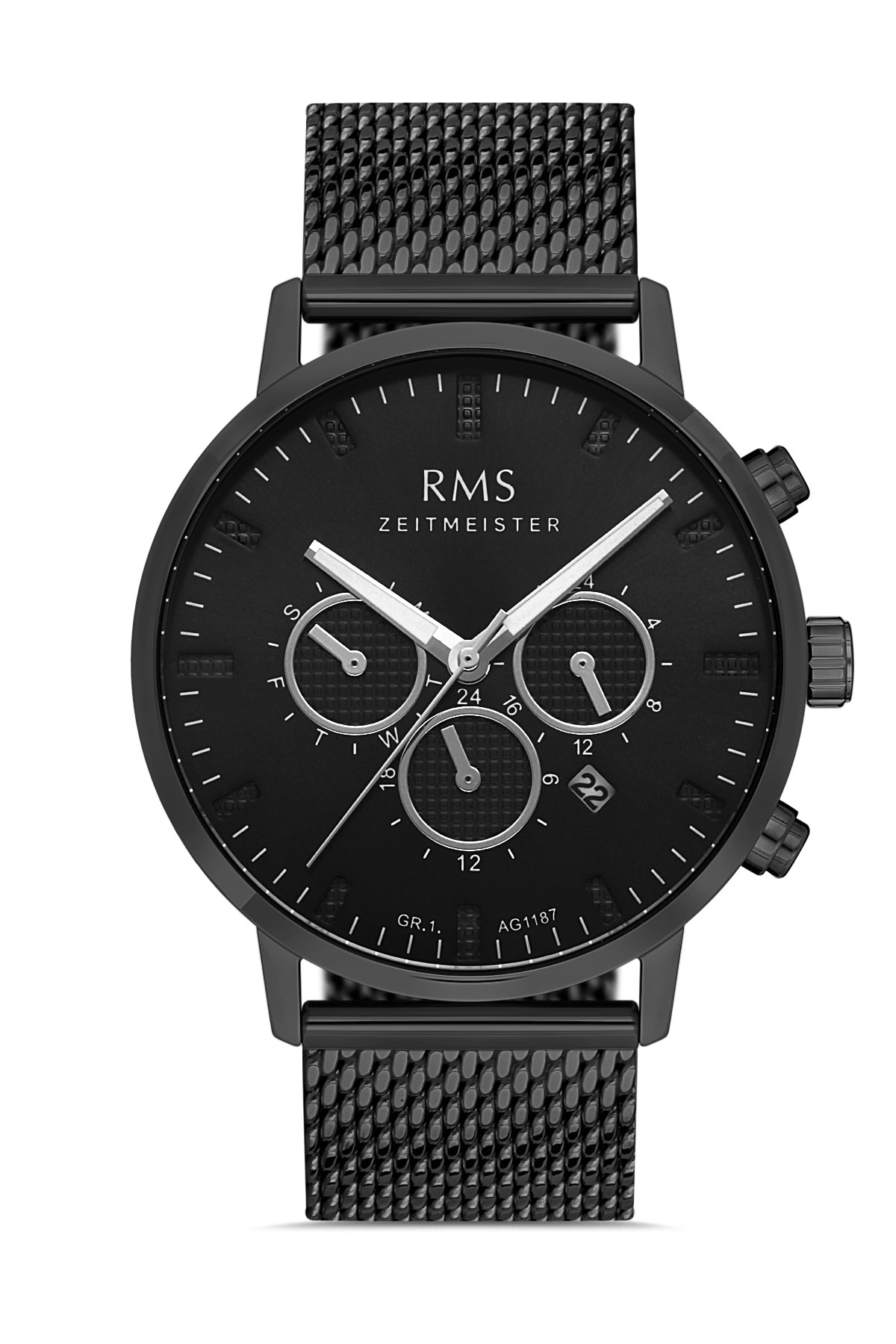 Erkek - Multi̇ Fonksi̇yon - Si̇yah - Si̇yah - Çeli̇k Örme Kordon - 3 Atm - Sertleşti̇ri̇lmi̇ş Mi̇neral Cam - Grand Romanson