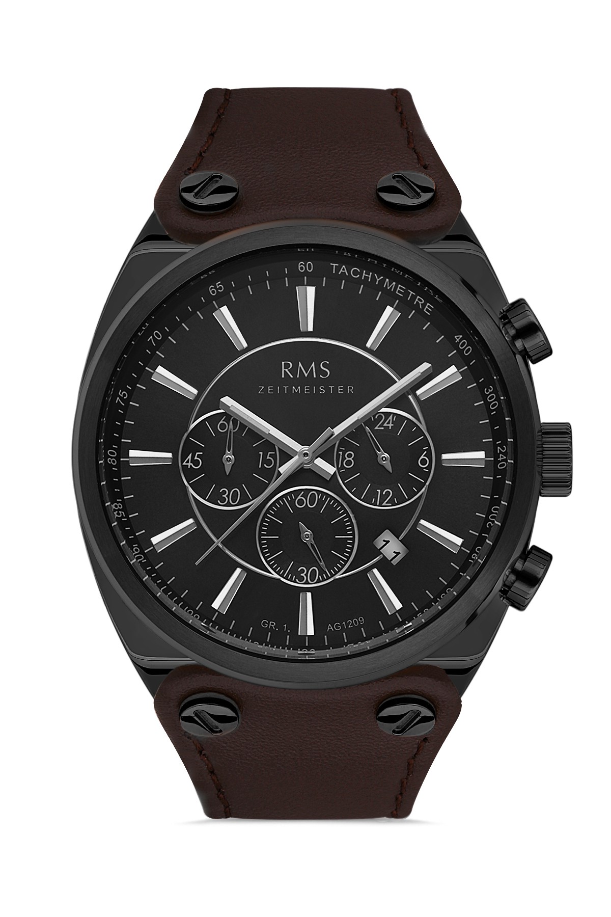 Erkek - Kronometre - Si̇yah - Si̇yah - Doğal Deri̇ Kordon - Kahverengi̇ - 3 Atm - Sertleşti̇ri̇lmi̇ş Mi̇neral Cam - Grand Romanson