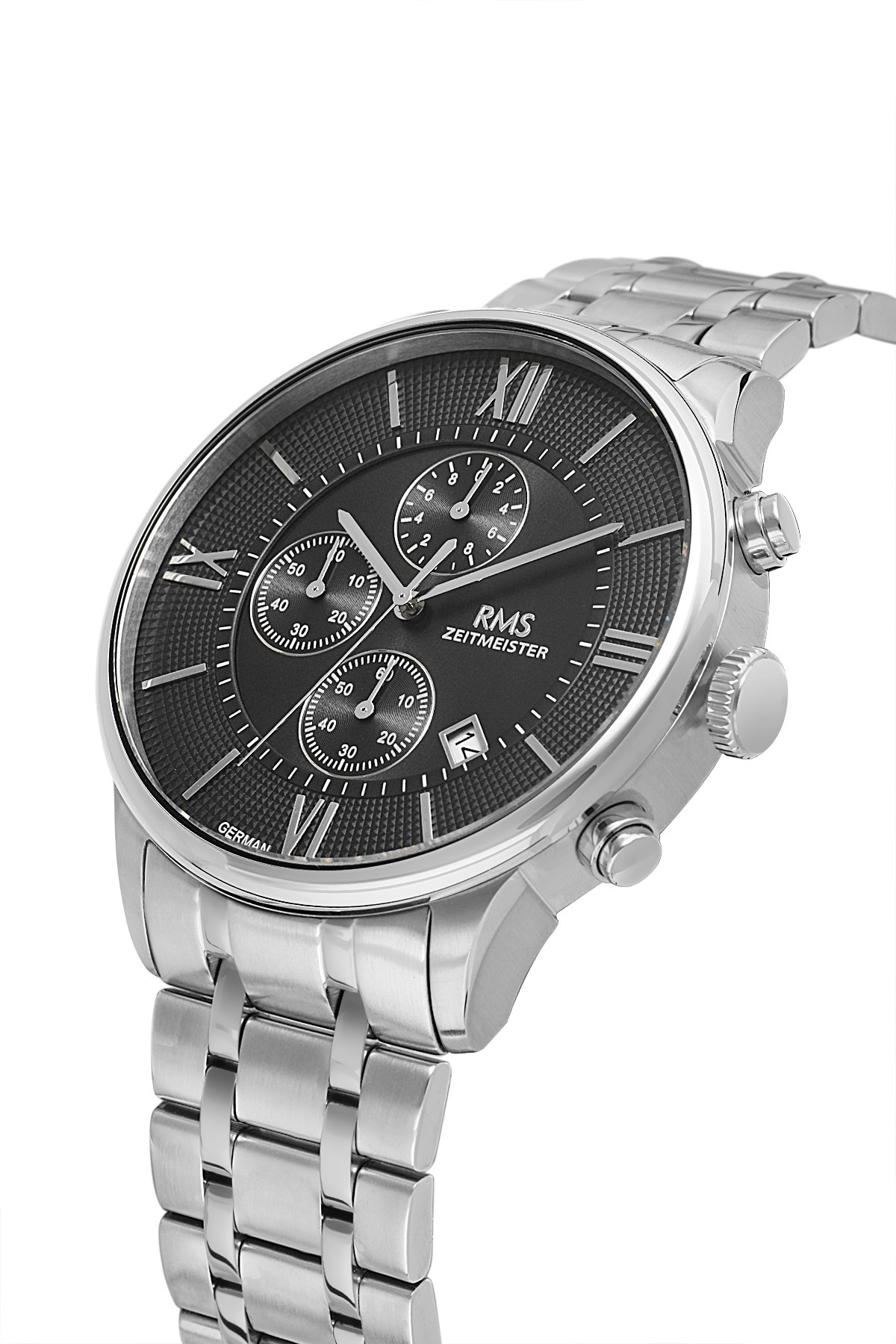 Erkek - Kronometre - Gümüş - Si̇yah - Paslanmaz Masi̇f Çeli̇k - 5 Atm - Sertleşti̇ri̇lmi̇ş Mi̇neral Cam - Grand Romanson - 44
