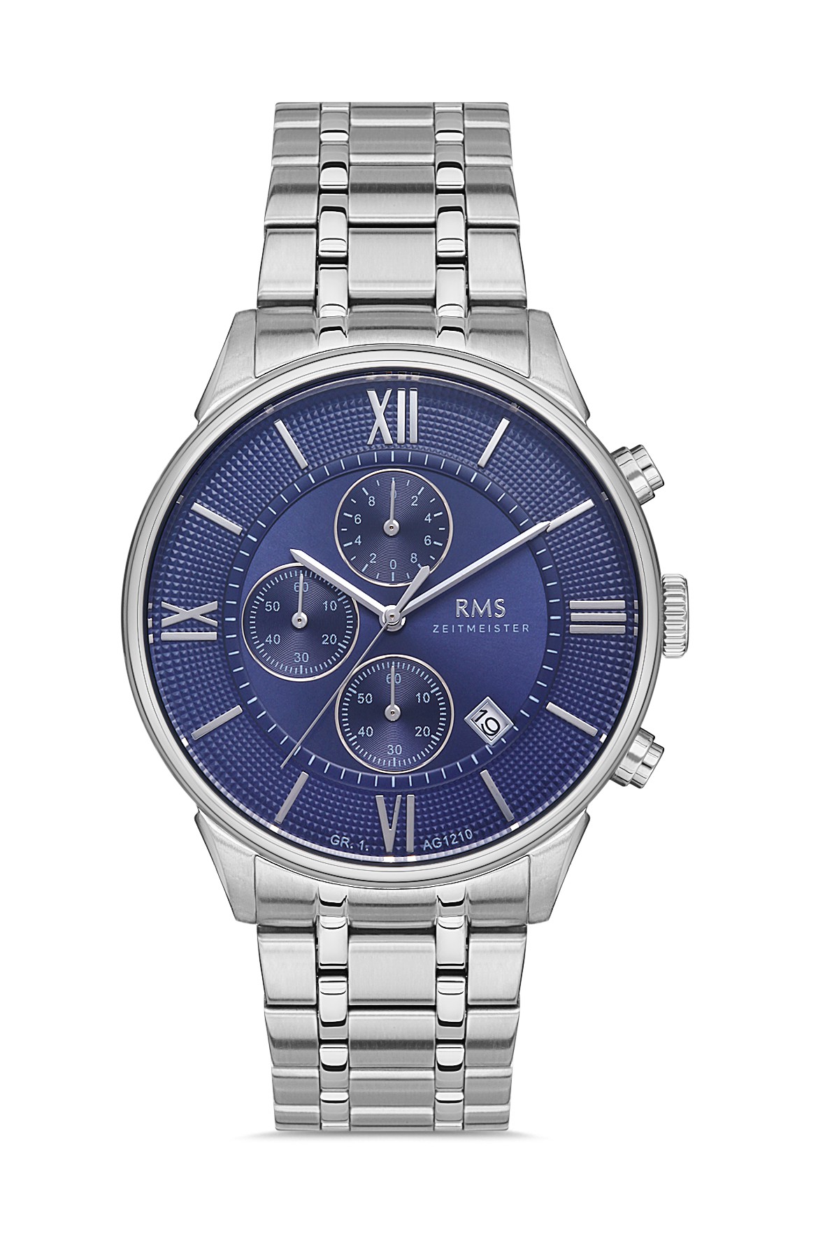 Erkek - Kronometre - Gümüş - Mavi̇ - Paslanmaz Masi̇f Çeli̇k - 5 Atm - Sertleşti̇ri̇lmi̇ş Mi̇neral Cam - Grand Romanson - 44