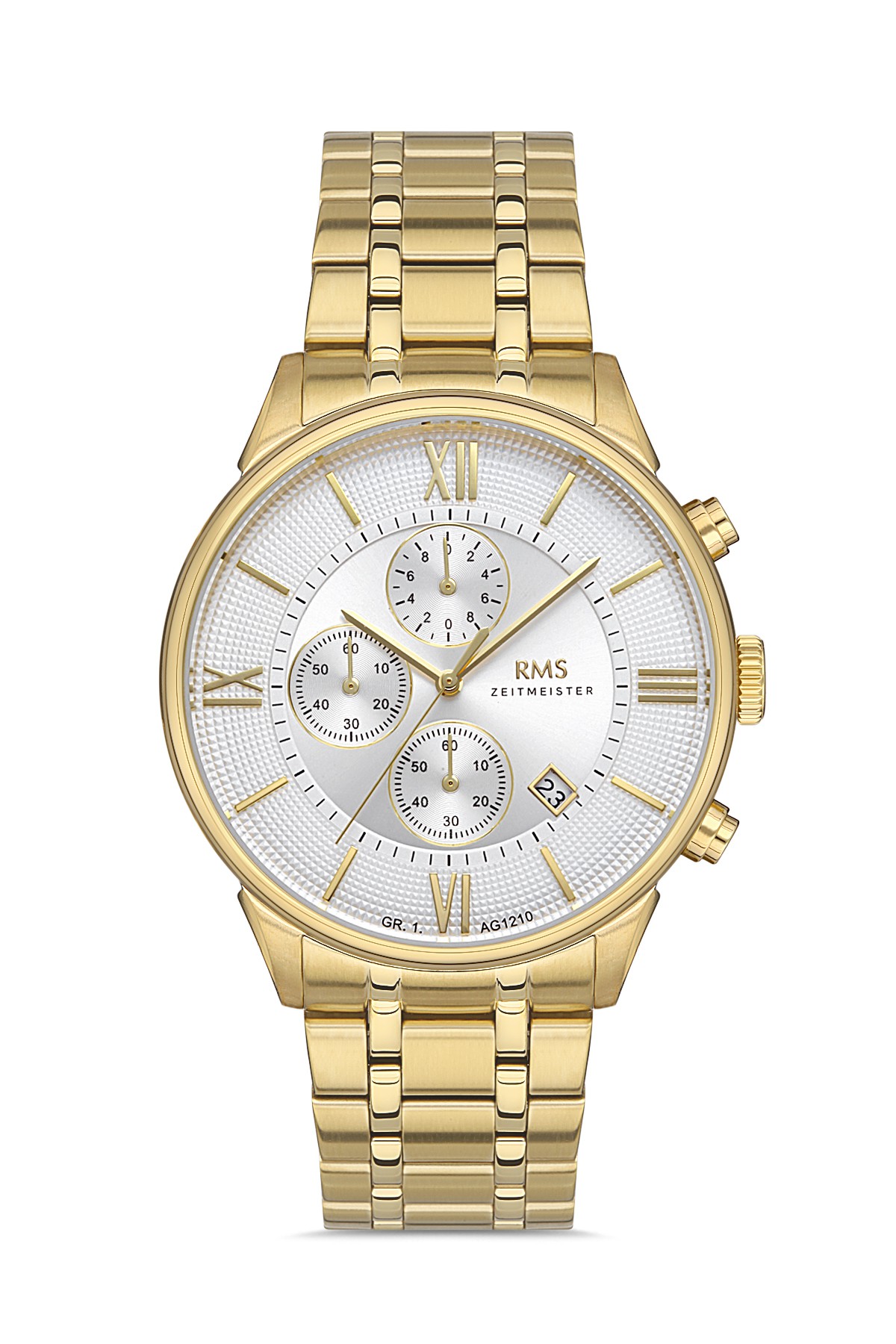 Erkek - Kronometre - Sari - Gümüş - Paslanmaz Masi̇f Çeli̇k - 5 Atm - Sertleşti̇ri̇lmi̇ş Mi̇neral Cam - Grand Romanson - 44