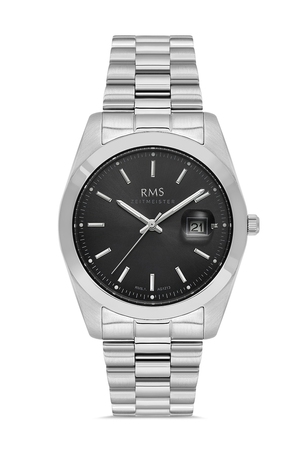 Erkek - Takvi̇mli̇ - Gümüş - Si̇yah - Paslanmaz Masi̇f Çeli̇k - 3 Atm - Sertleşti̇ri̇lmi̇ş Mi̇neral Cam - Grand Romanson - 40