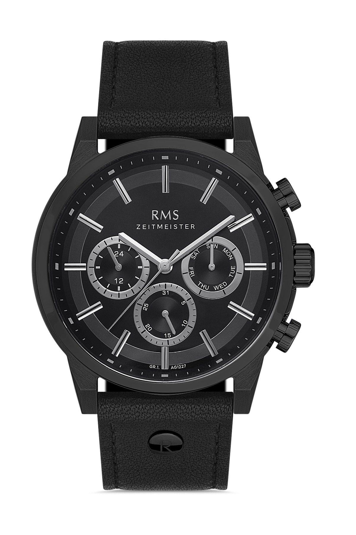 Erkek - Multi̇ Fonksi̇yon - Si̇yah - Si̇yah - Doğal Deri̇ Kordon - Si̇yah - 3 Atm - Sertleşti̇ri̇lmi̇ş Mi̇neral Cam - Grand Romanson