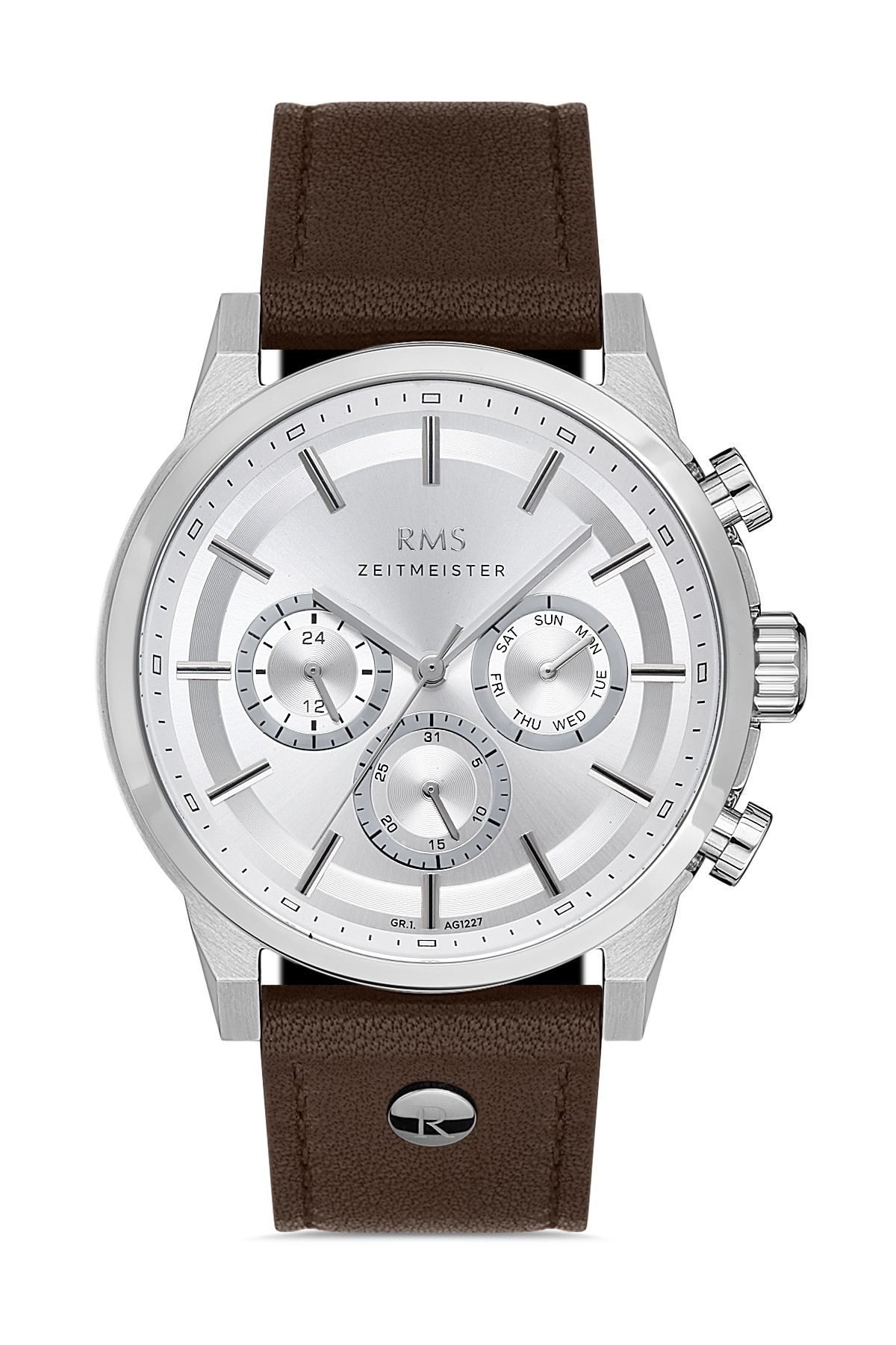 Erkek - Multi̇ Fonksi̇yon - Gümüş - Gümüş - Doğal Deri̇ Kordon - Kahverengi̇ - 3 Atm - Sertleşti̇ri̇lmi̇ş Mi̇neral Cam - Grand Romanson