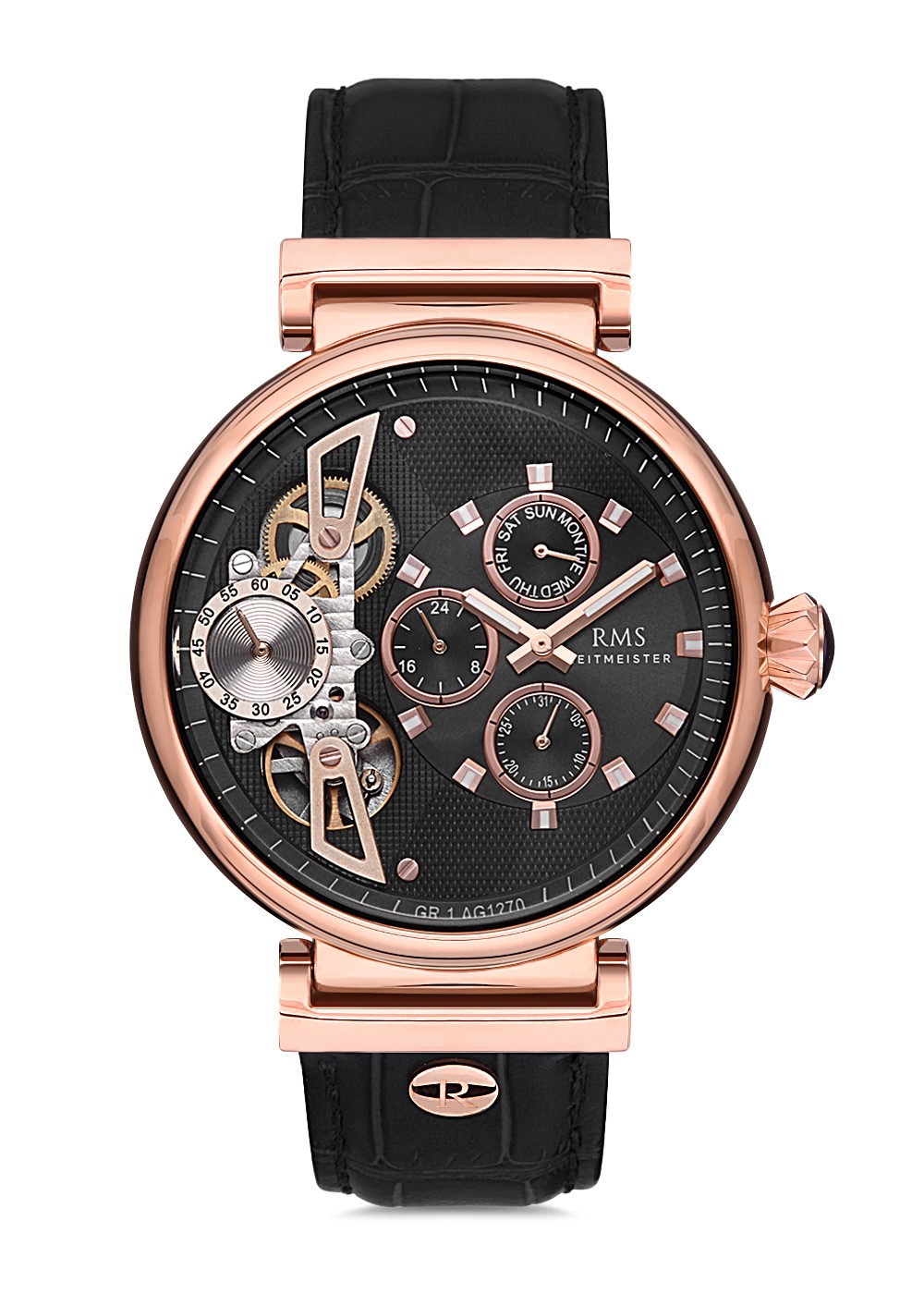Erkek - Multi̇ Fonksi̇yon - Rose - Si̇yah - Doğal Deri̇ Kordon - Si̇yah - 5 Atm - Sertleşti̇ri̇lmi̇ş Mi̇neral Cam - Grand Romanson - 45