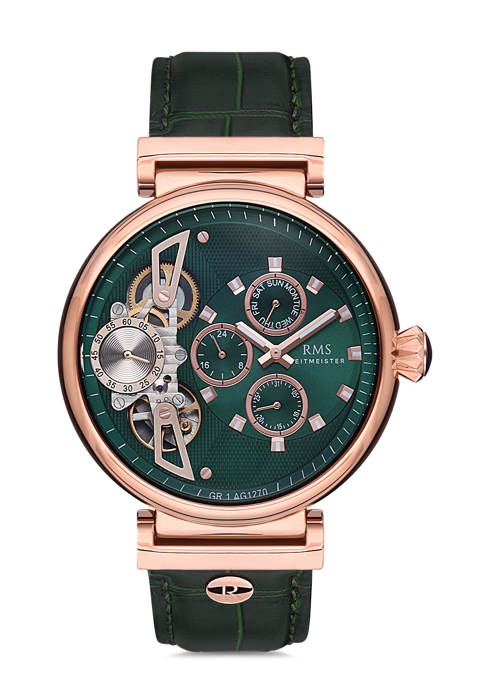 Erkek - Multi̇ Fonksi̇yon - Rose - Yeşi̇l - Doğal Deri̇ Kordon - Yeşi̇l - 5 Atm - Sertleşti̇ri̇lmi̇ş Mi̇neral Cam - Grand Romanson - 45
