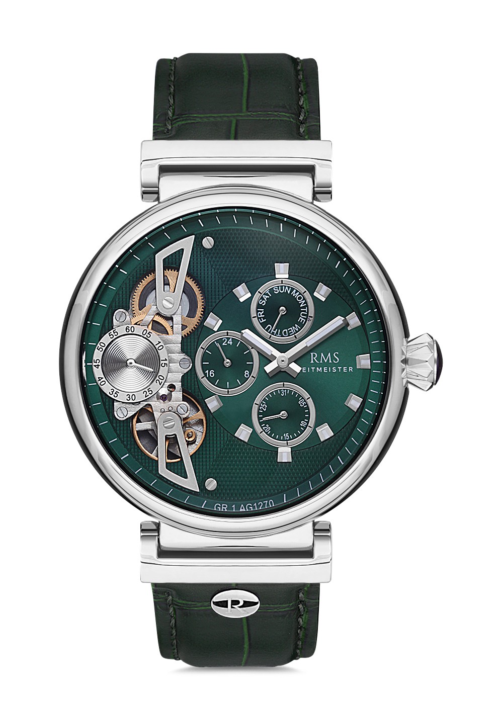 Erkek - Multi̇ Fonksi̇yon - Gümüş - Yeşi̇l - Doğal Deri̇ Kordon - Yeşi̇l - 5 Atm - Sertleşti̇ri̇lmi̇ş Mi̇neral Cam - Grand Romanson - 45