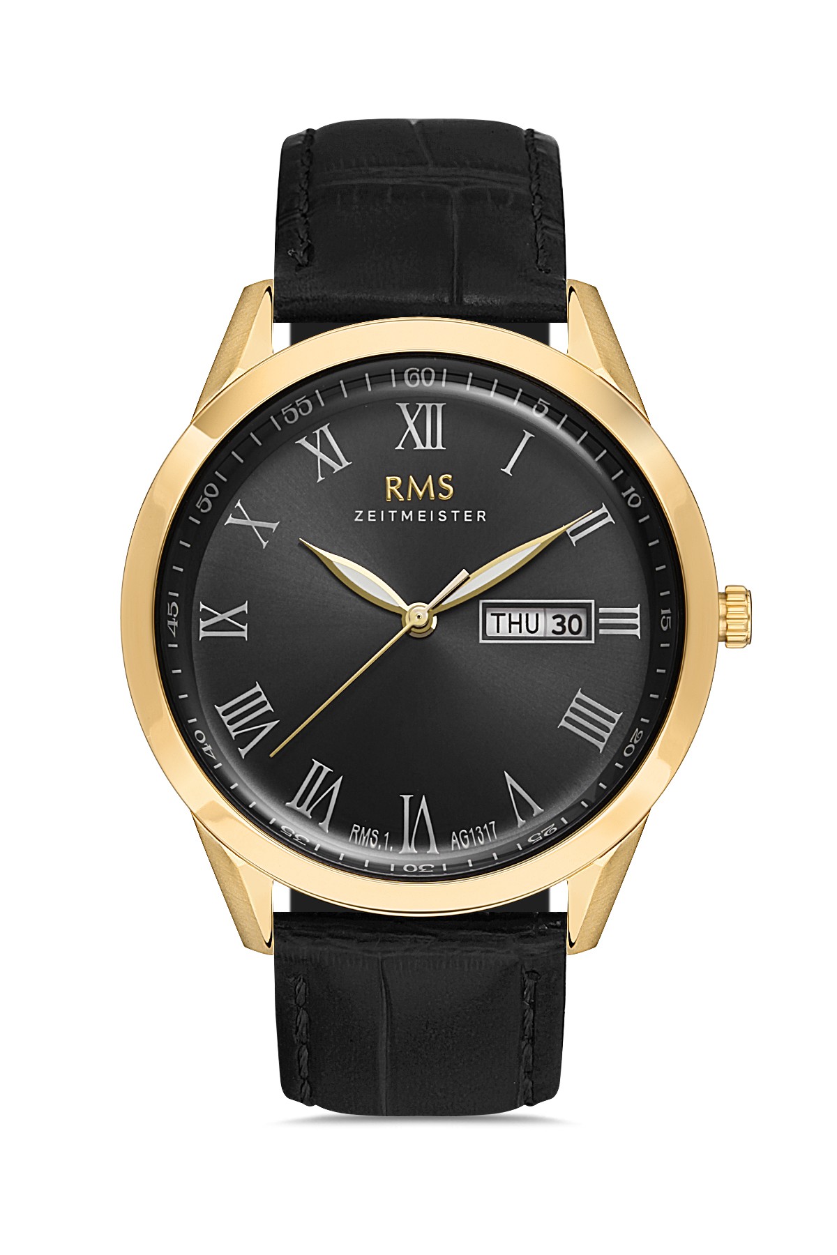 Erkek - Takvi̇mli̇ - Sari - Si̇yah - Doğal Deri̇ Kordon - Si̇yah - 3 Atm - Sertleşti̇ri̇lmi̇ş Mi̇neral Cam - Grand Romanson - 41