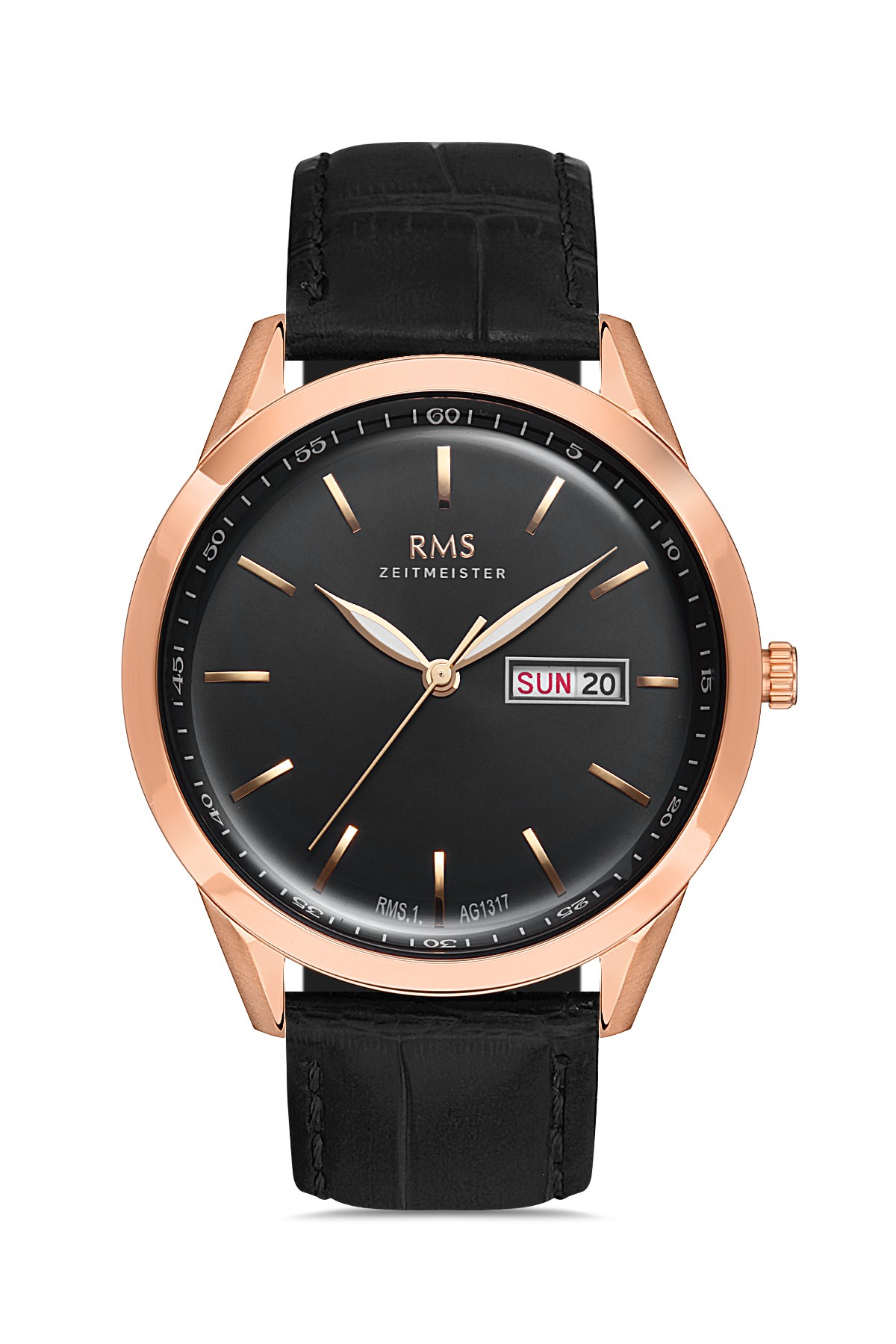 Erkek - Takvi̇mli̇ - Rose - Si̇yah - Doğal Deri̇ Kordon - Si̇yah - 3 Atm - Sertleşti̇ri̇lmi̇ş Mi̇neral Cam - Grand Romanson