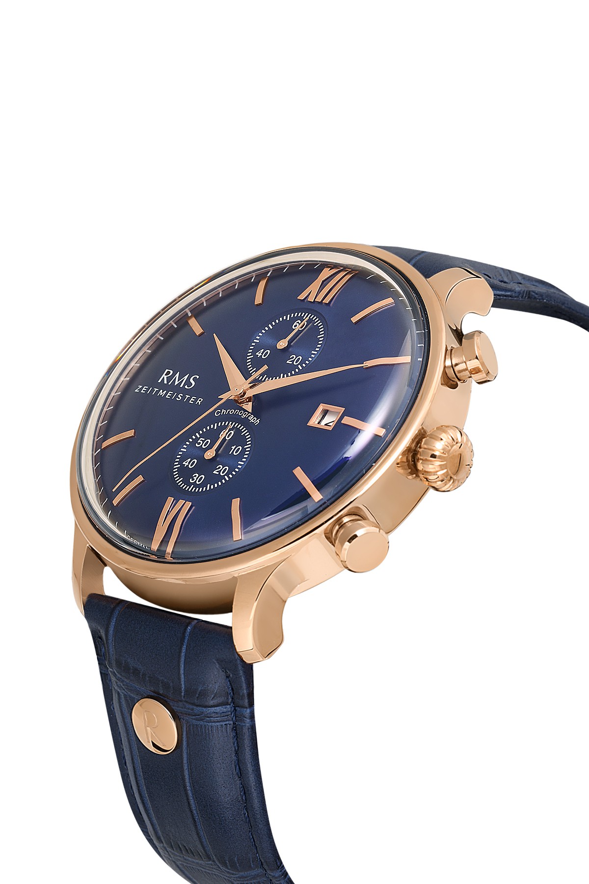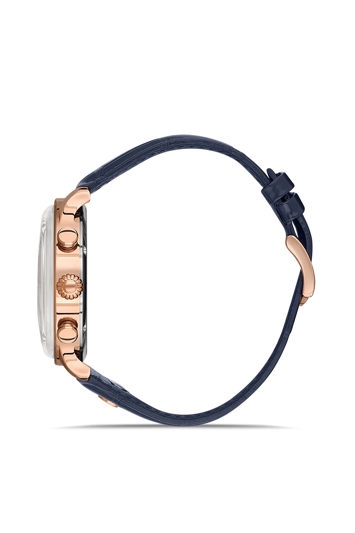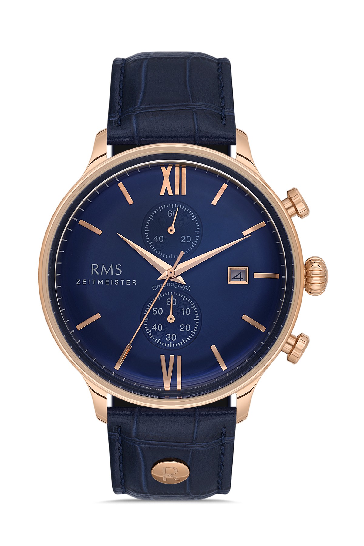 Erkek - Multi̇ Fonksi̇yon - Rose - Mavi̇ - Doğal Deri̇ Kordon - Mavi̇ - 5 Atm - Sertleşti̇ri̇lmi̇ş Mi̇neral Cam - Grand Romanson - 45